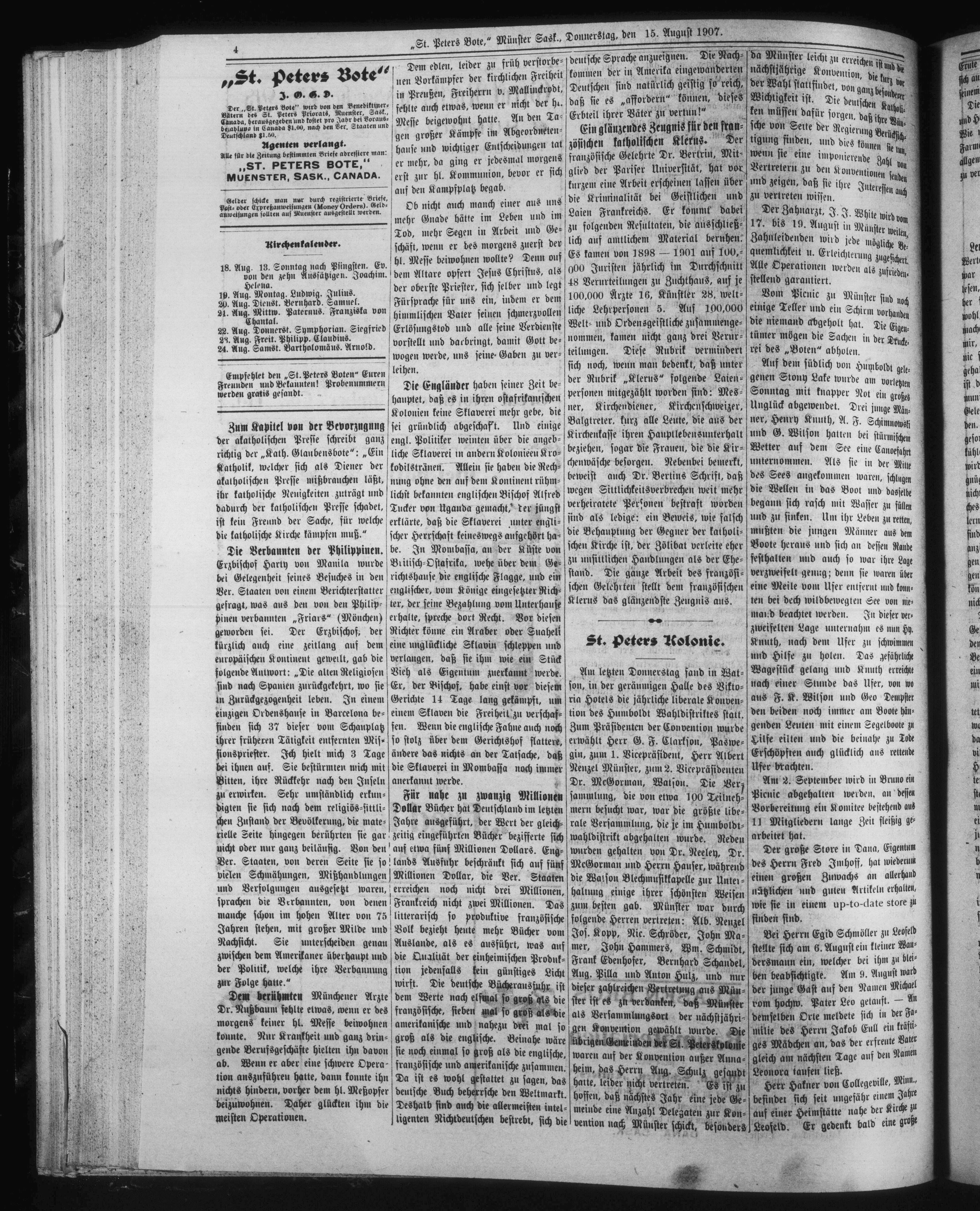 St. Peter's Bote : 4. Jahrgang, No. 25 (15 August 1907)