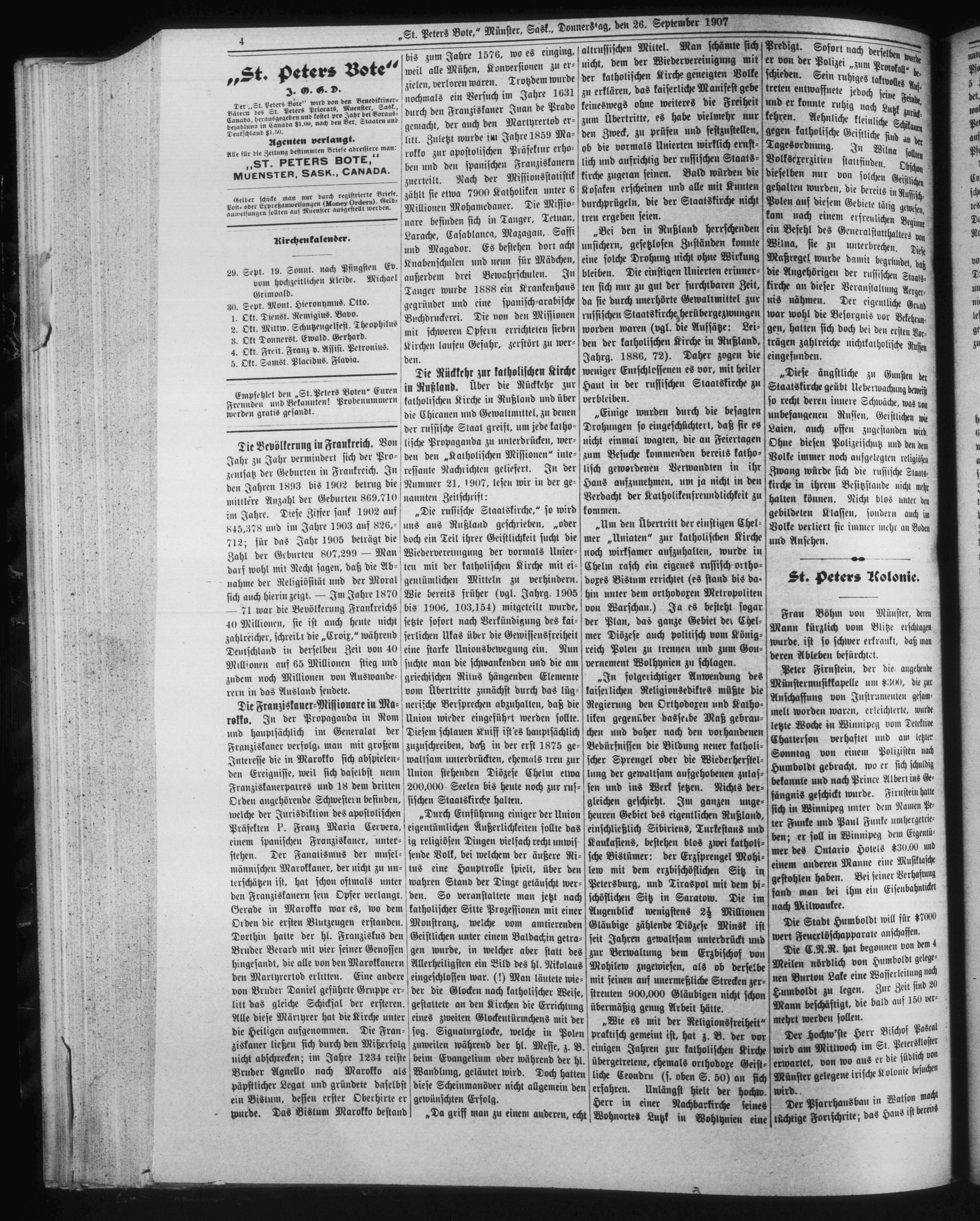 St. Peter's Bote : 4. Jahrgang, No. 31 (26 September 1907)