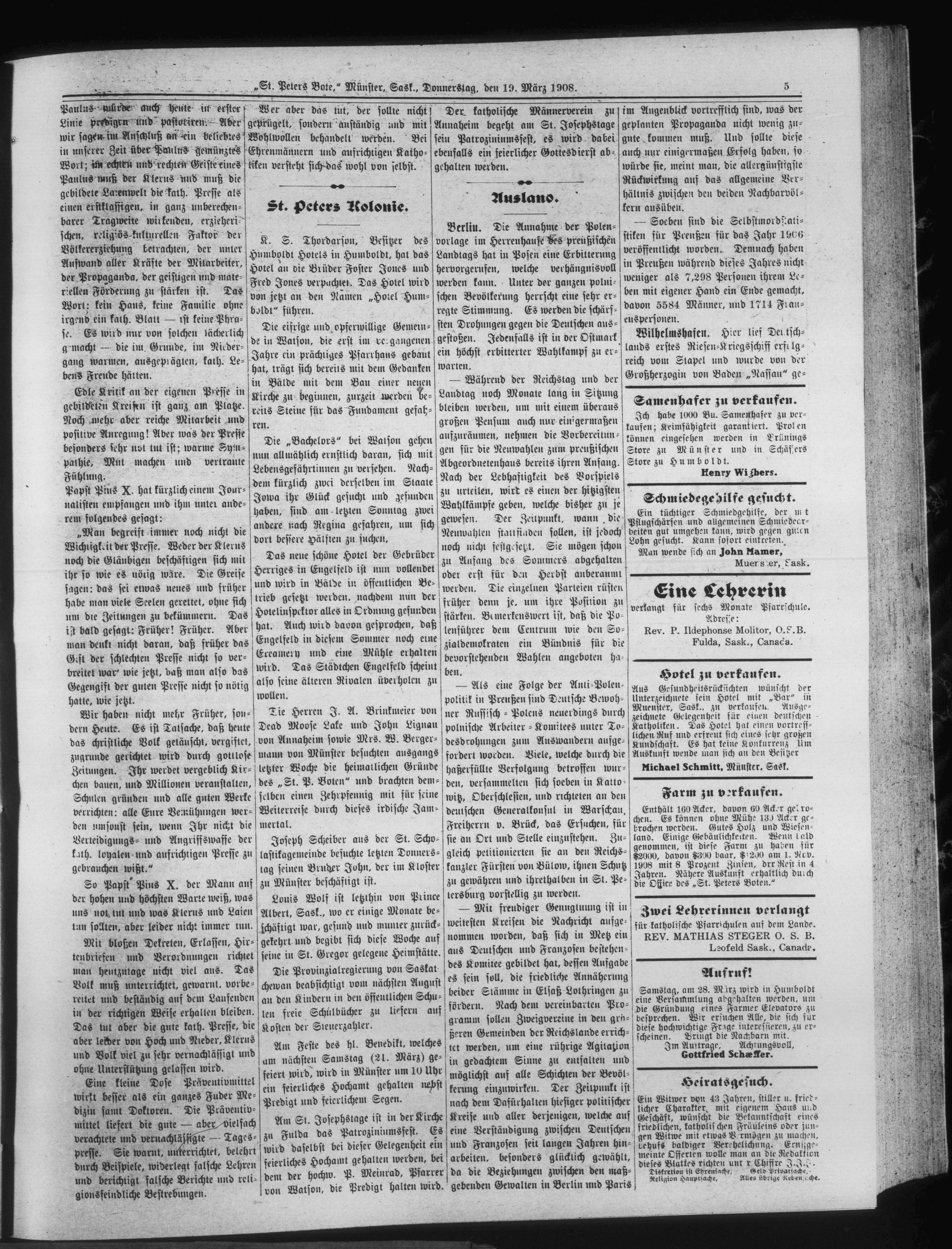 St. Peter's Bote : 5. Jahrgang, No. 4 (19 März 1908)