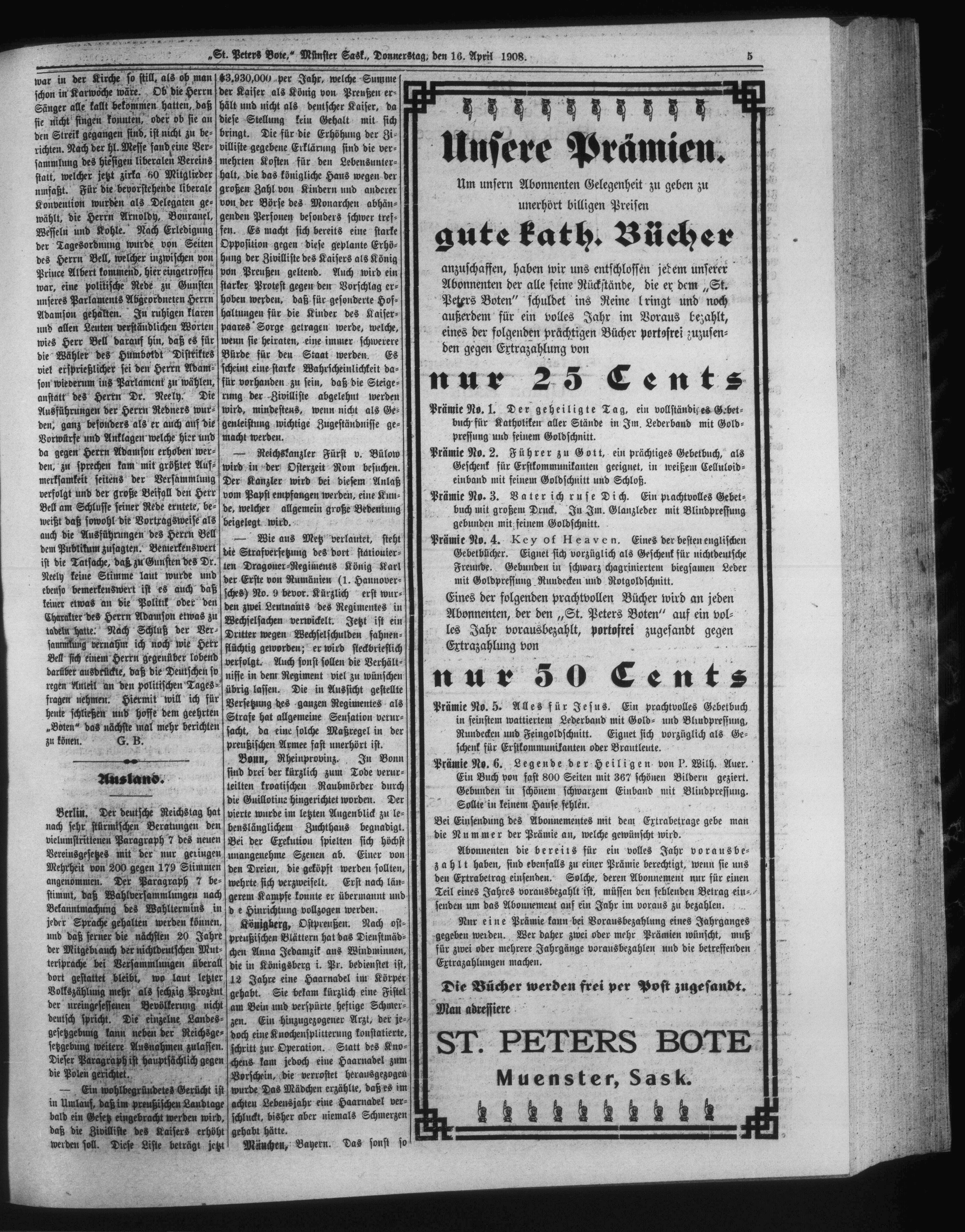St. Peter's Bote : 5. Jahrgang, No. 8 (16 April 1908)