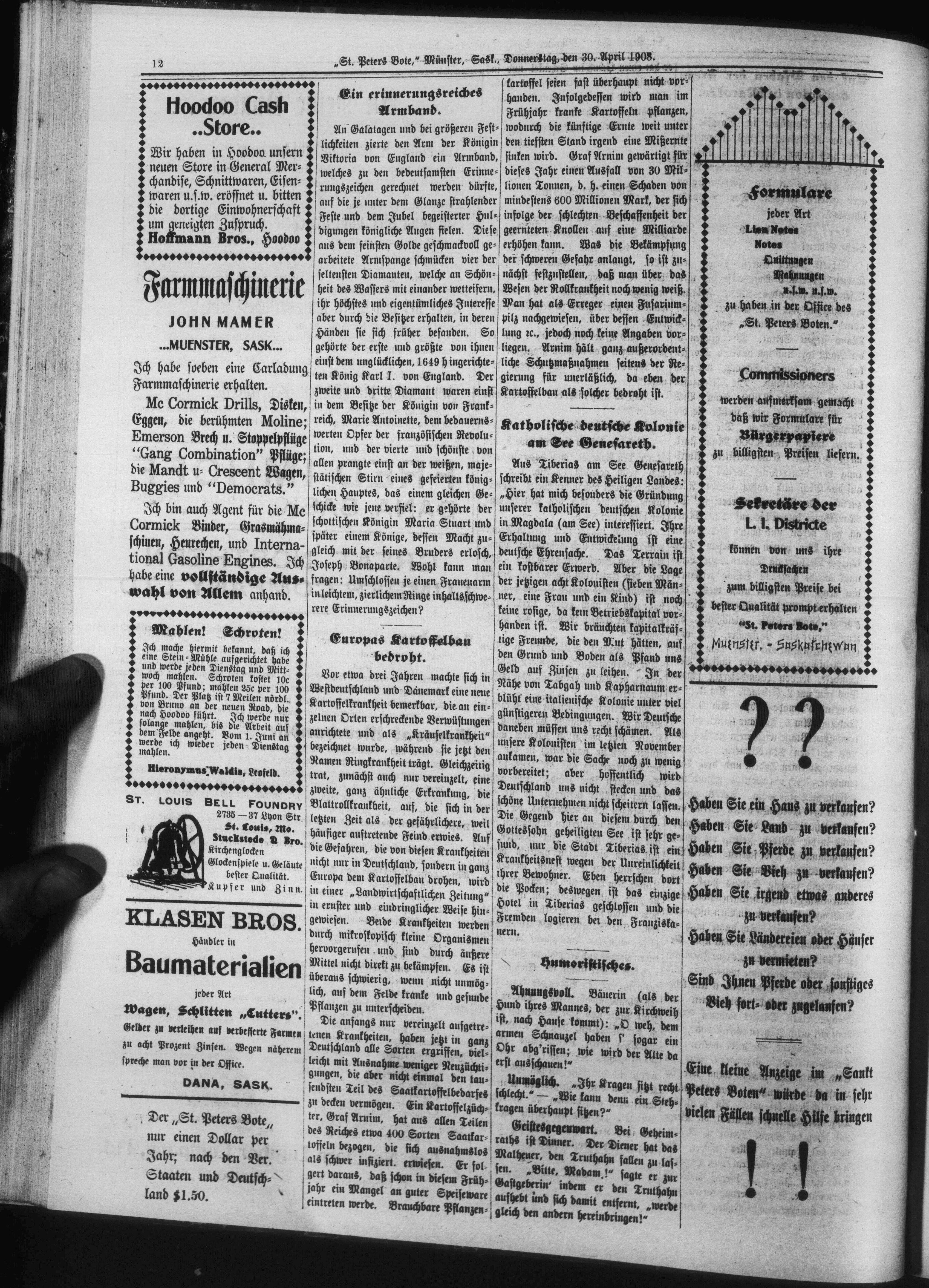 Aide Münster [Muenster], Sask. : Benediktiner-Vätern des St. Peter's Priorat; 12 images avec recherche en texte intégral