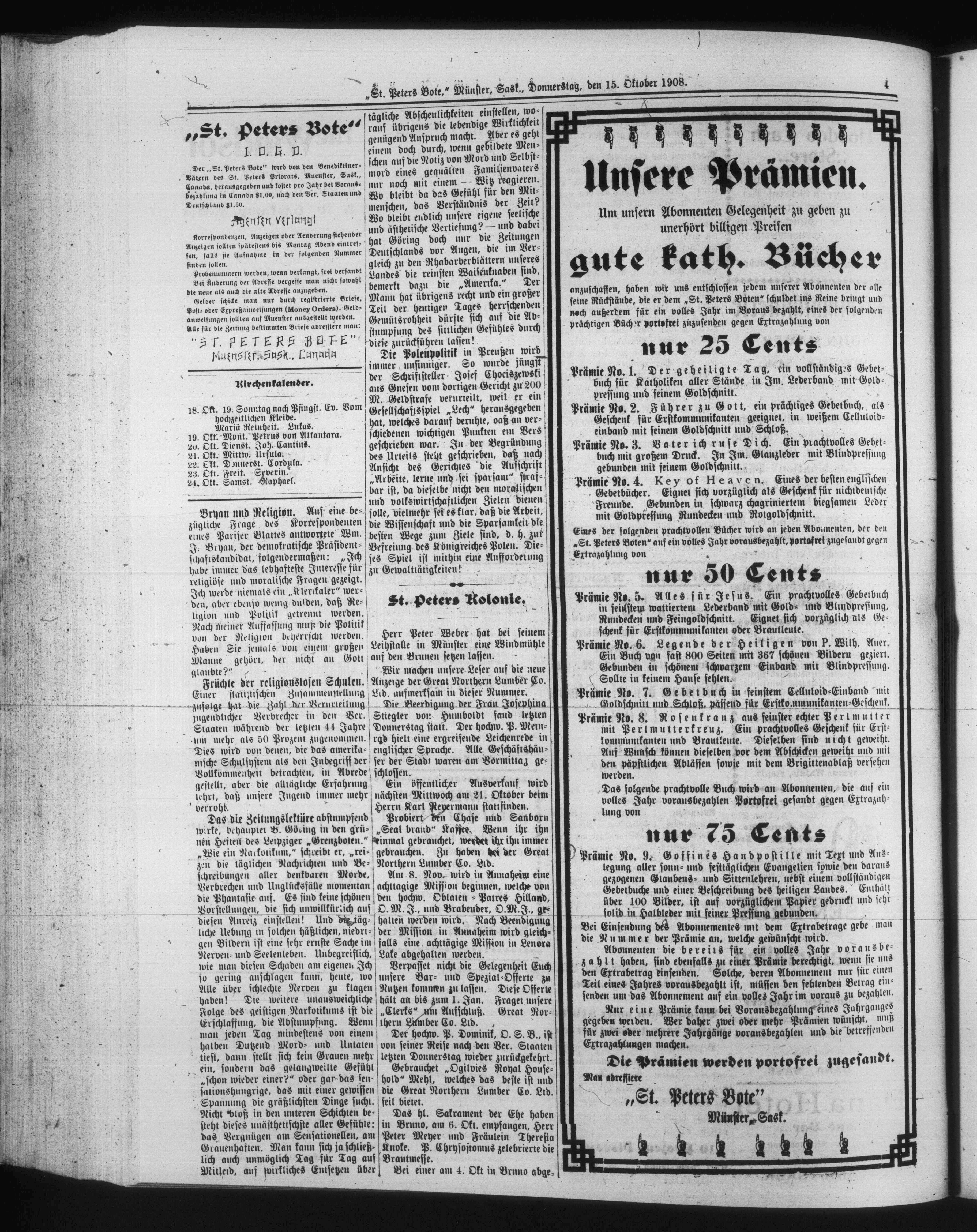 Aide Münster [Muenster], Sask. : Benediktiner-Vätern des St. Peter's Priorat; 9 images avec recherche en texte intégral