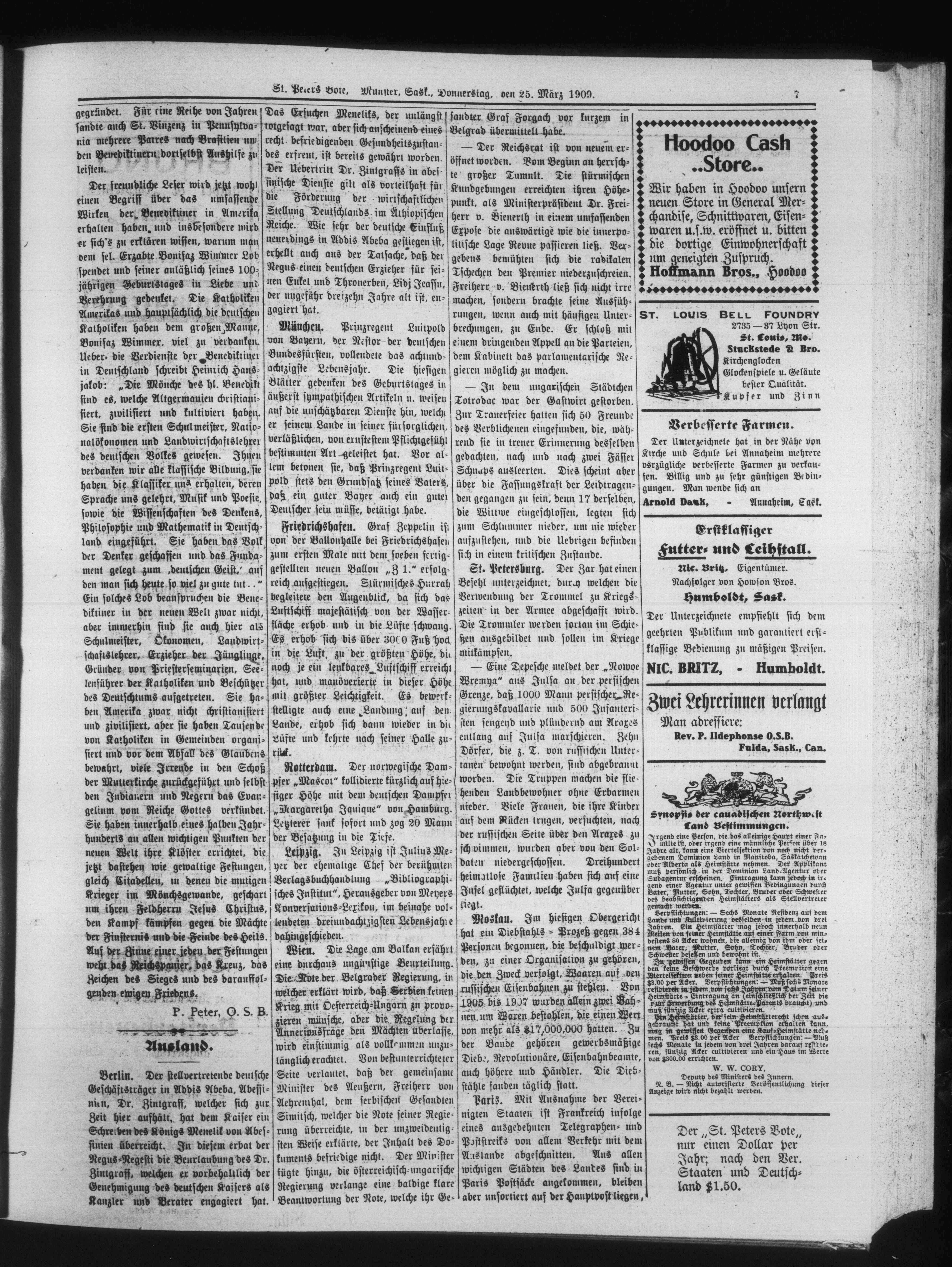 St. Peter's Bote : 6. Jahrgang, No. 5 (25 März 1909)