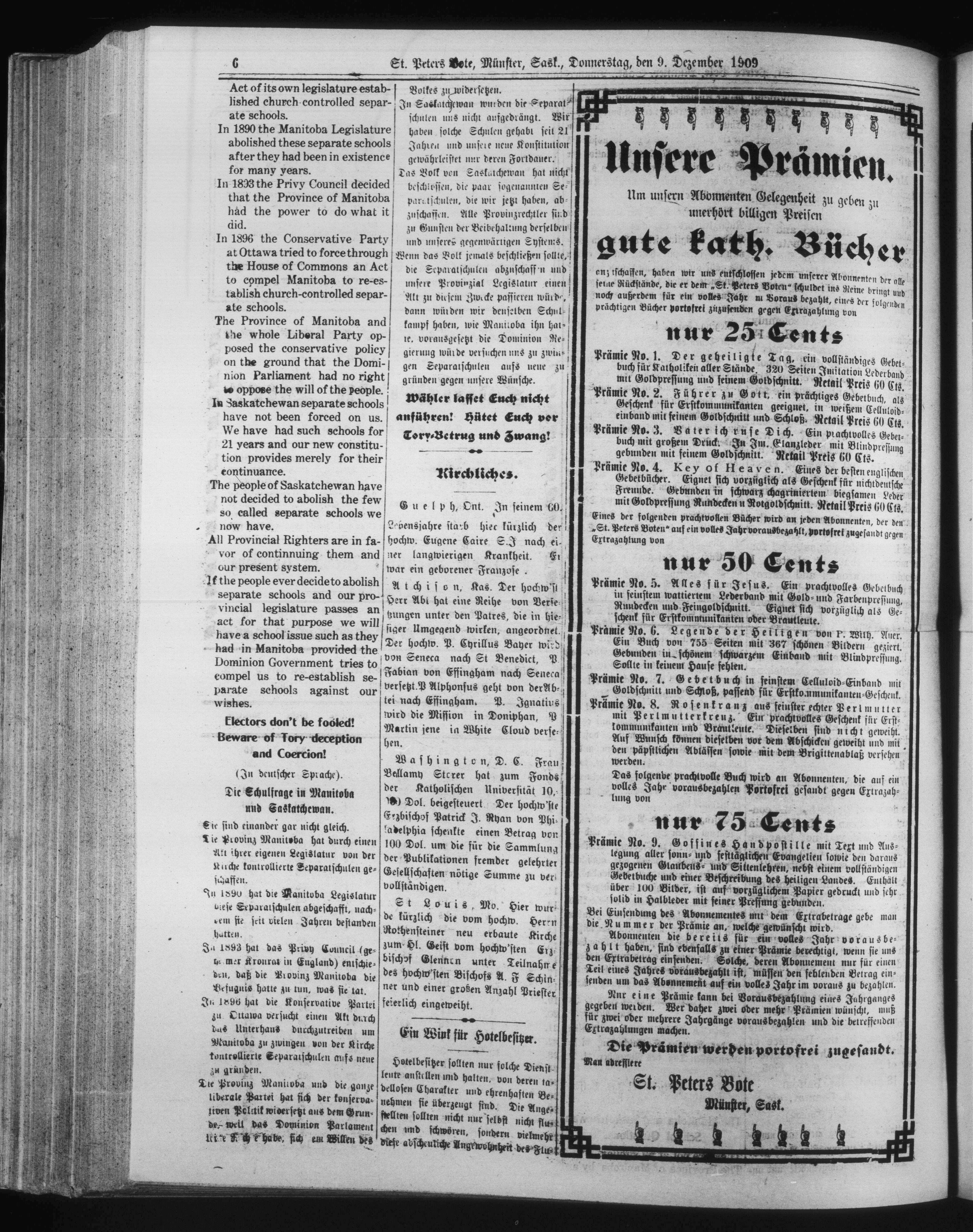 St. Peter's Bote : 6. Jahrgang, No. 42 (9 Dezember 1909)