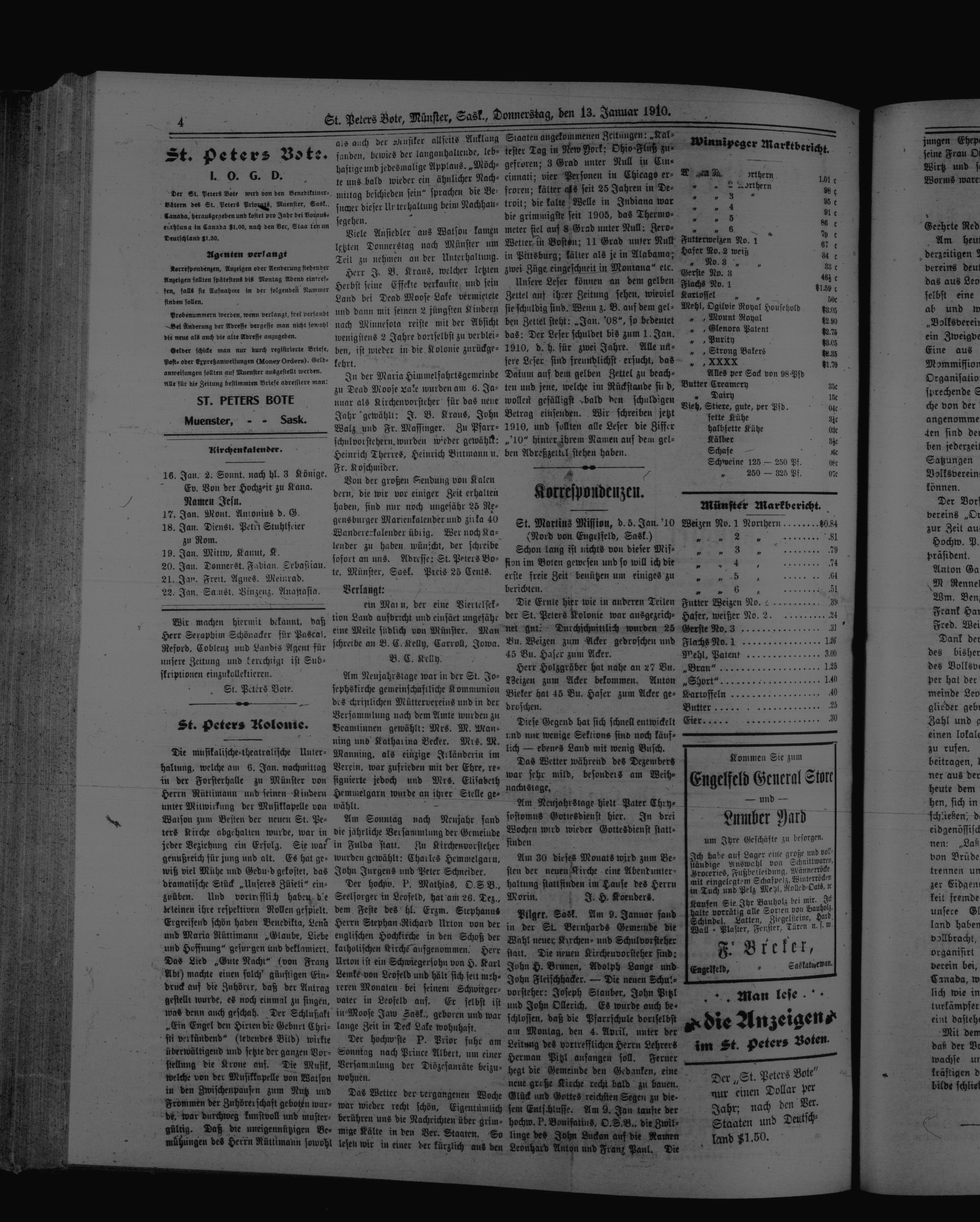 St. Peter's Bote : 6. Jahrgang, No. 47 (13 Januar 1910)