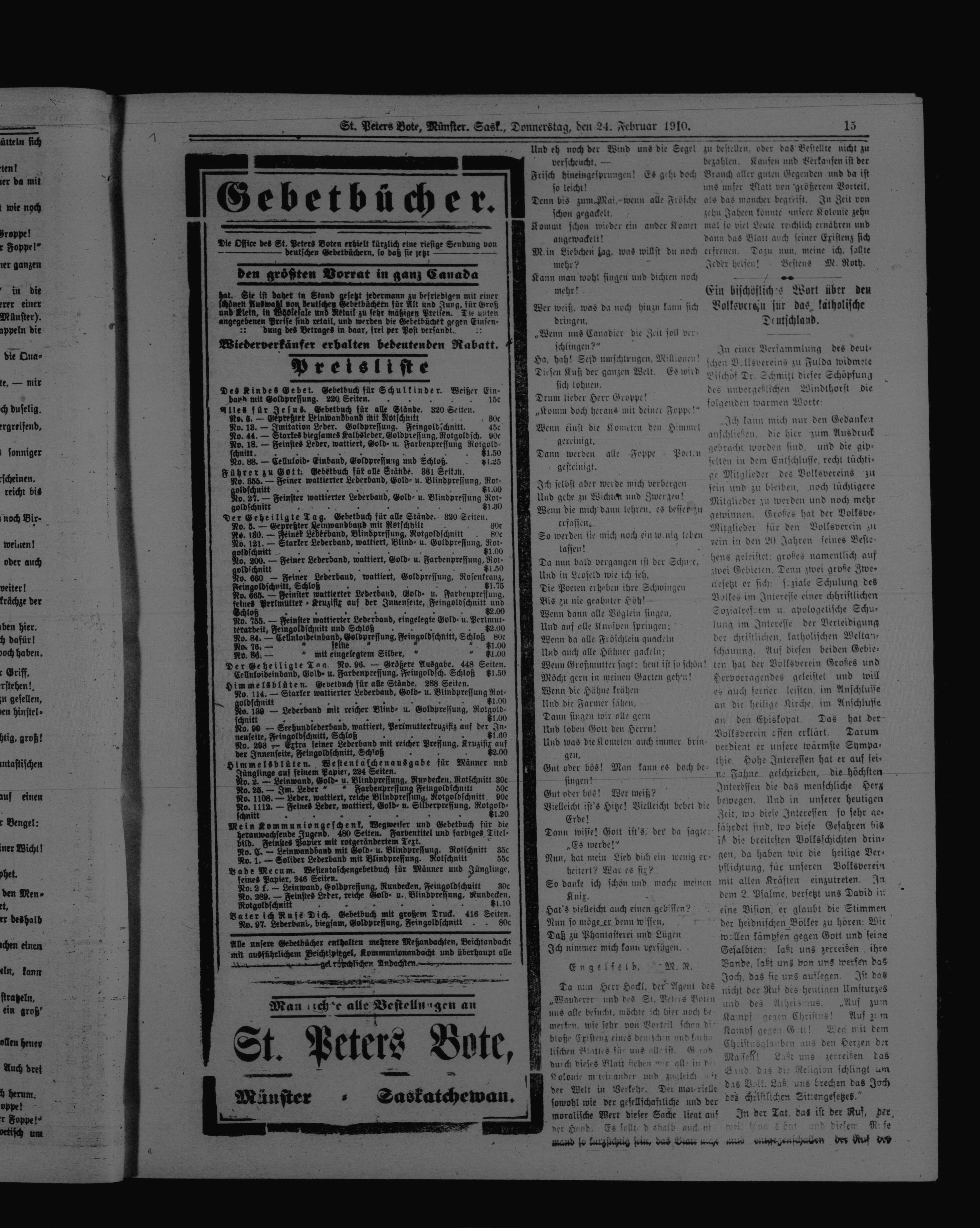 St. Peter's Bote : 7. Jahrgang, No. 1 (24 Februar 1910)