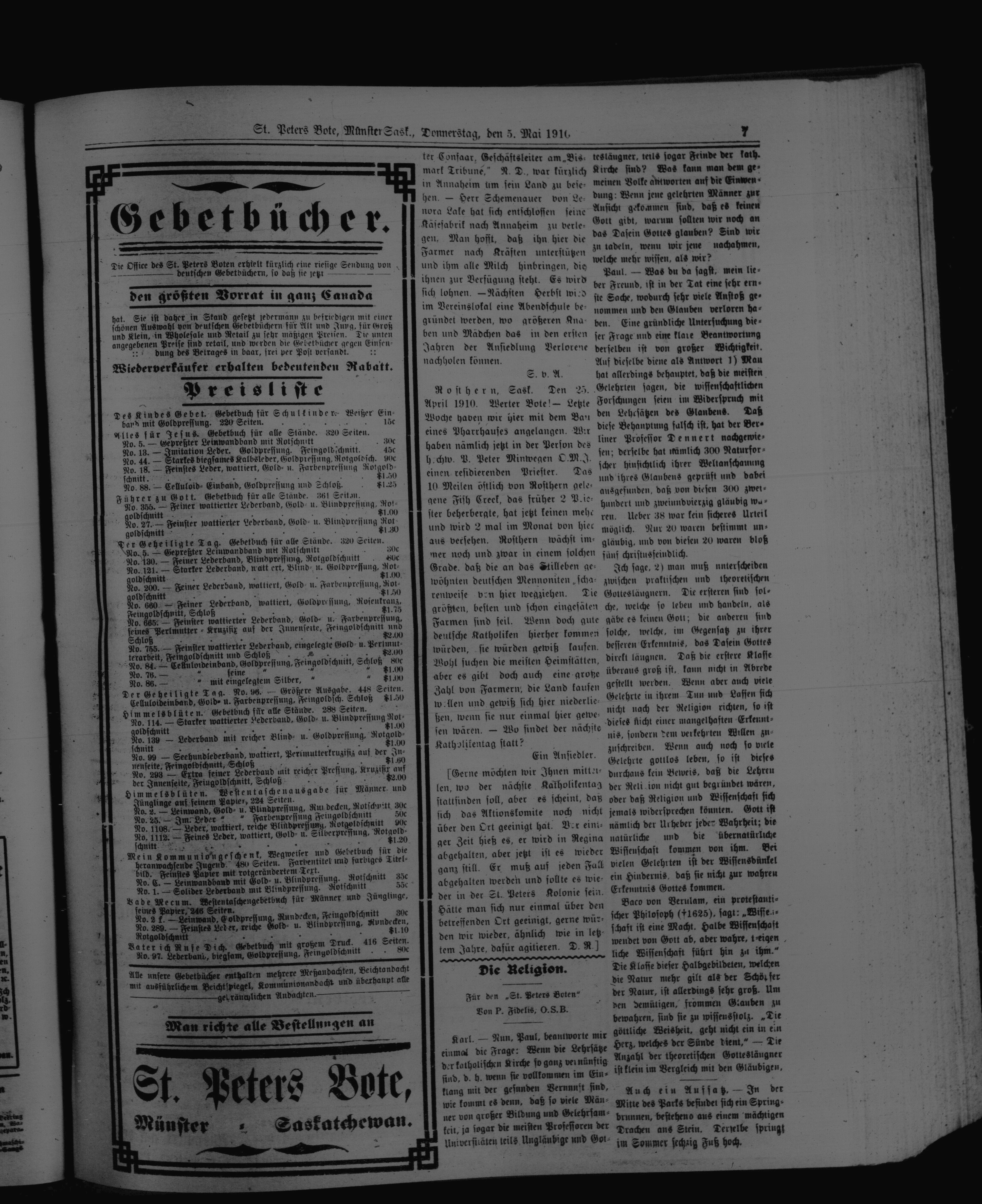 Aide Münster [Muenster], Sask. : Benediktiner-Vätern des St. Peter's Priorat; 12 images avec recherche en texte intégral