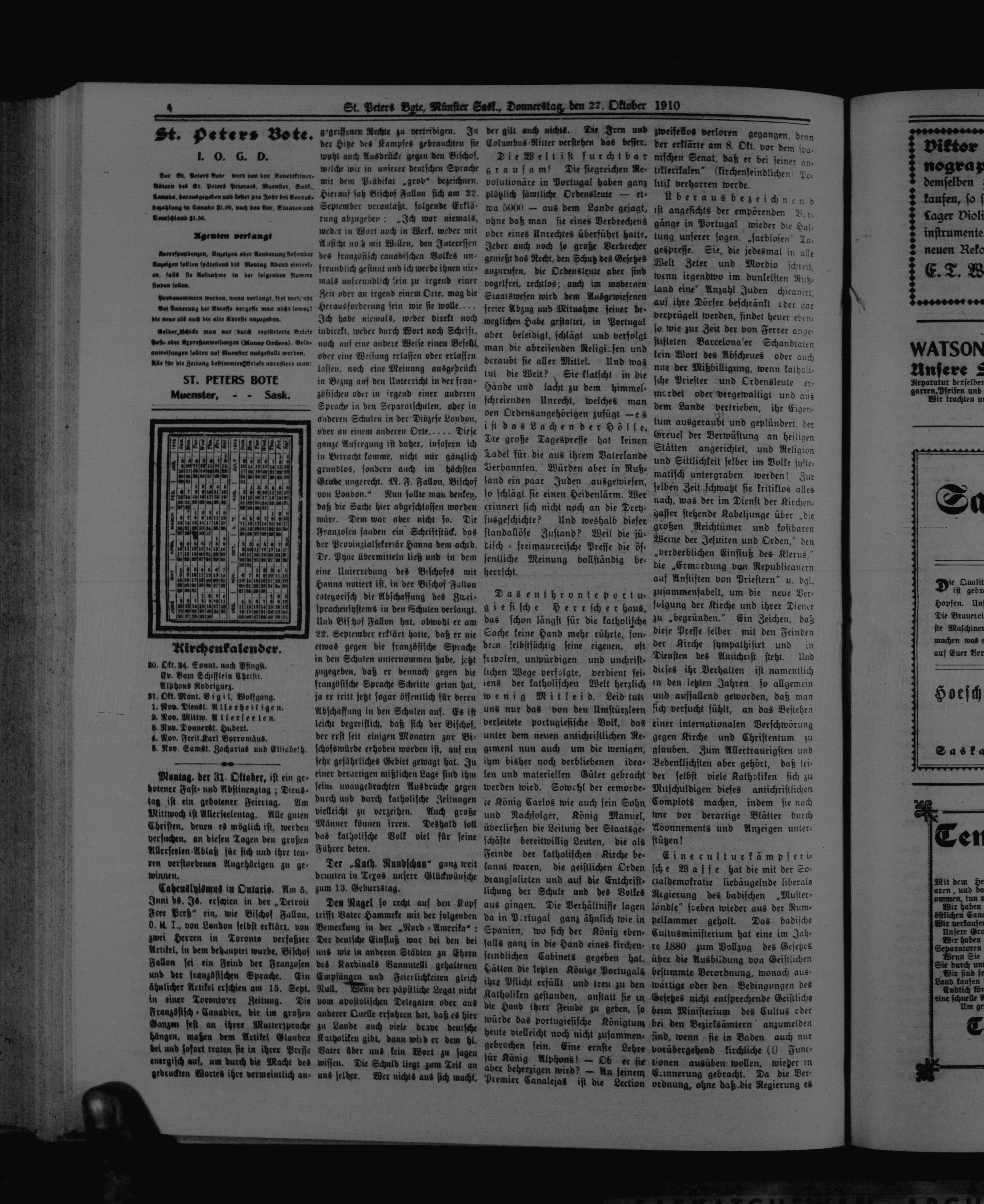St. Peter's Bote : 7. Jahrgang, No. 36 (27 Oktober 1910)