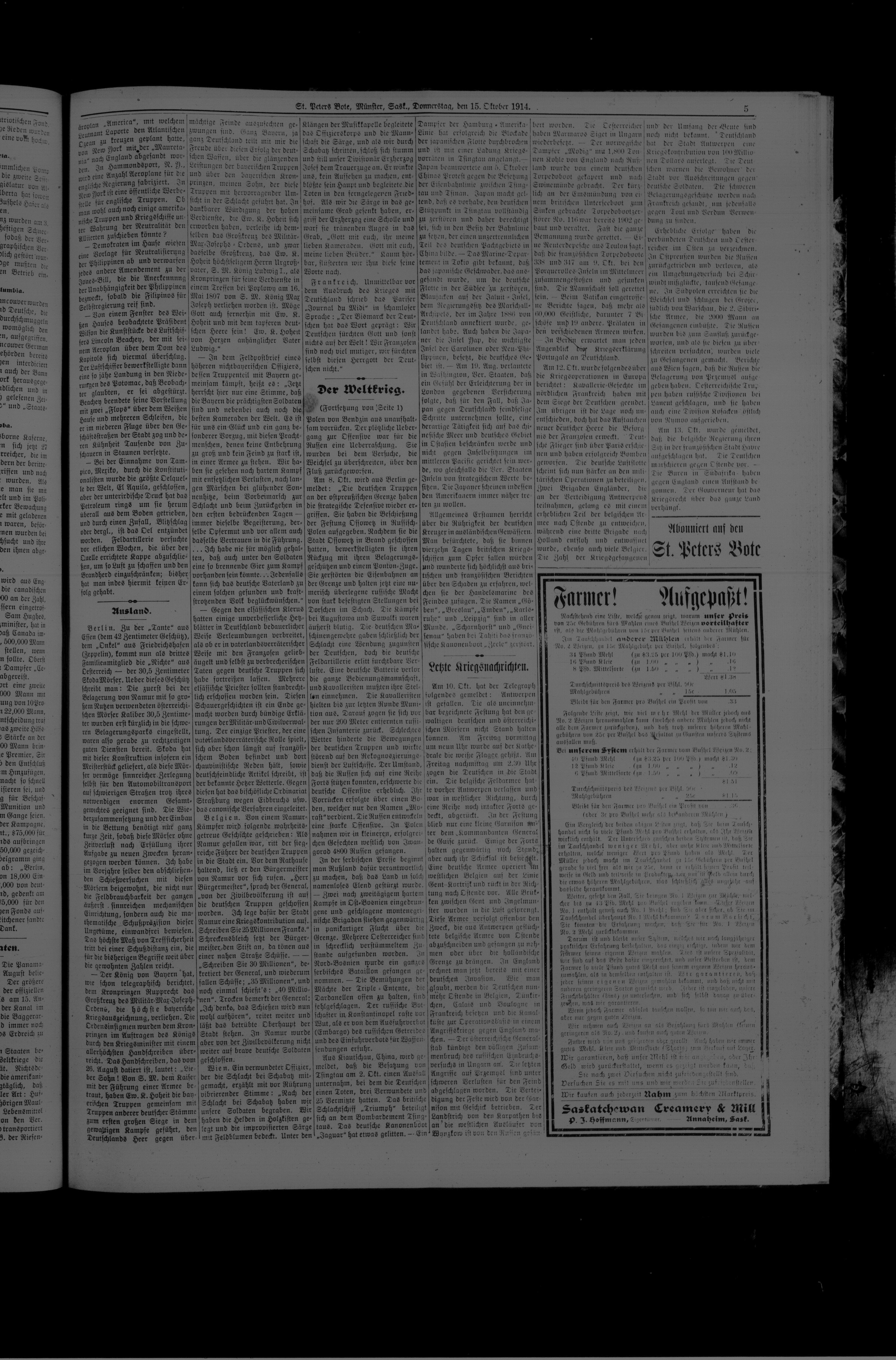 St. Peter's Bote : 11. Jahrgang, No. 35 (15 Oktober 1914)