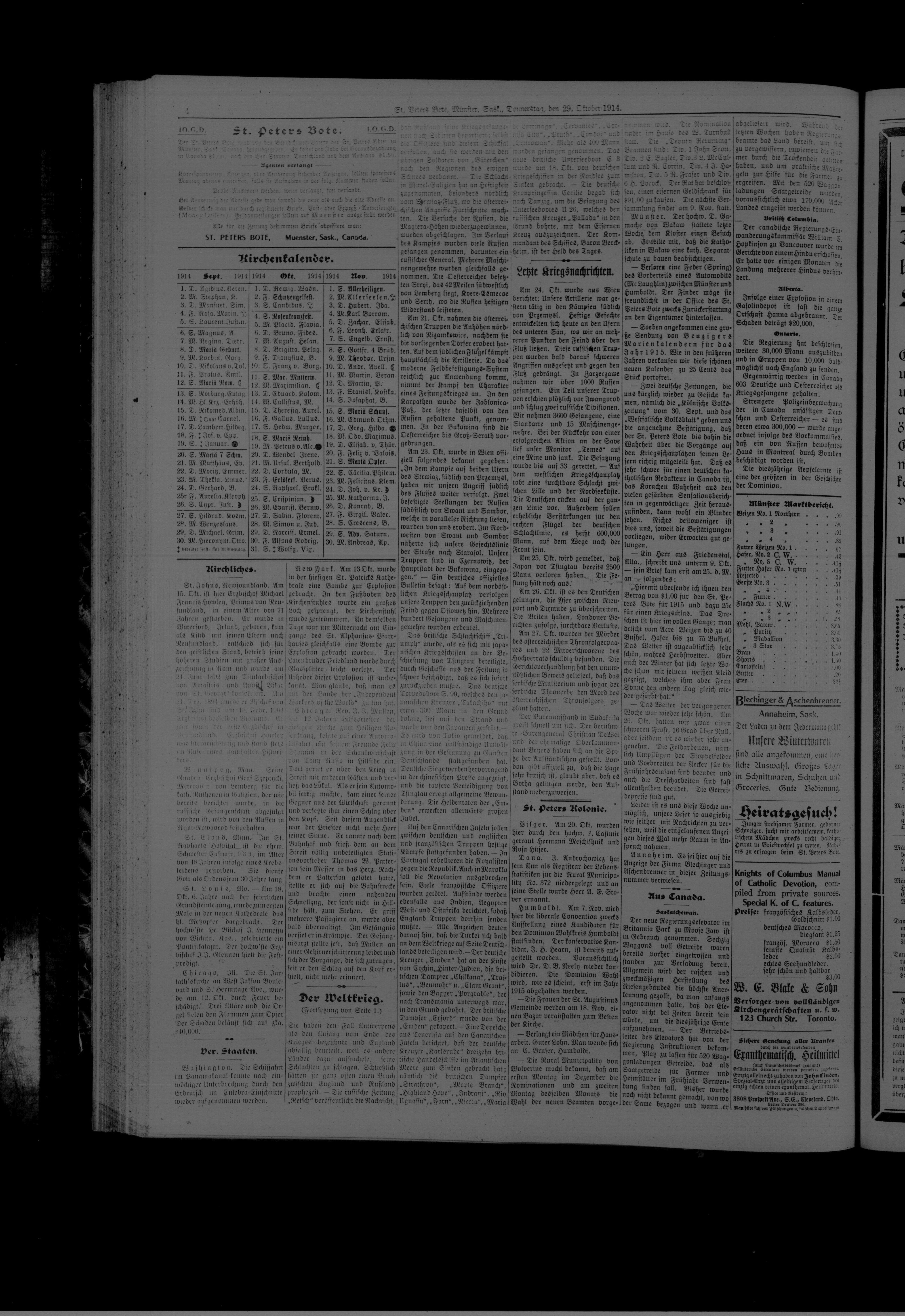 St. Peter's Bote : 11. Jahrgang, No. 37 (29 Oktober 1914)