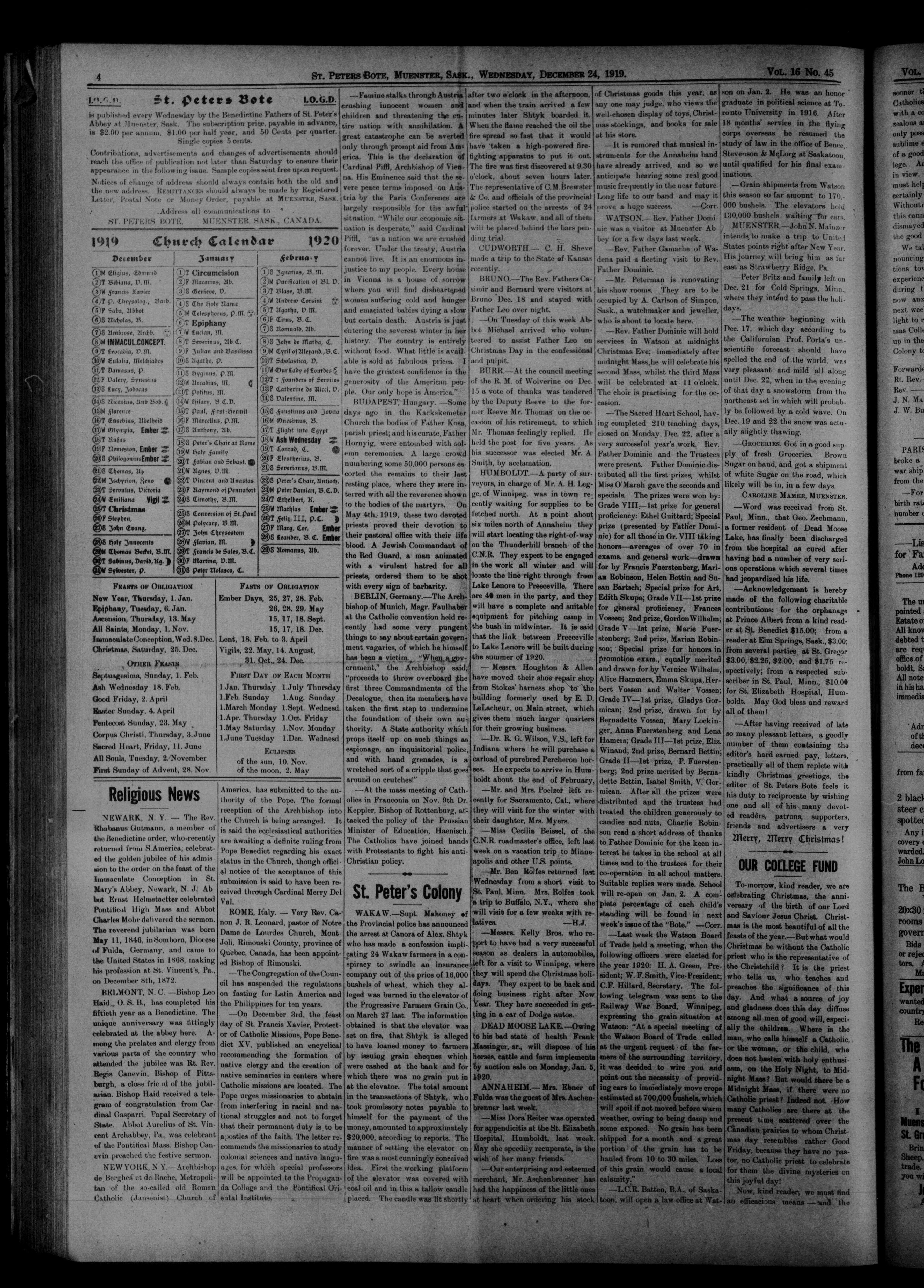St. Peter's Bote : Volume 16, No. 45 (December 24, 1919)