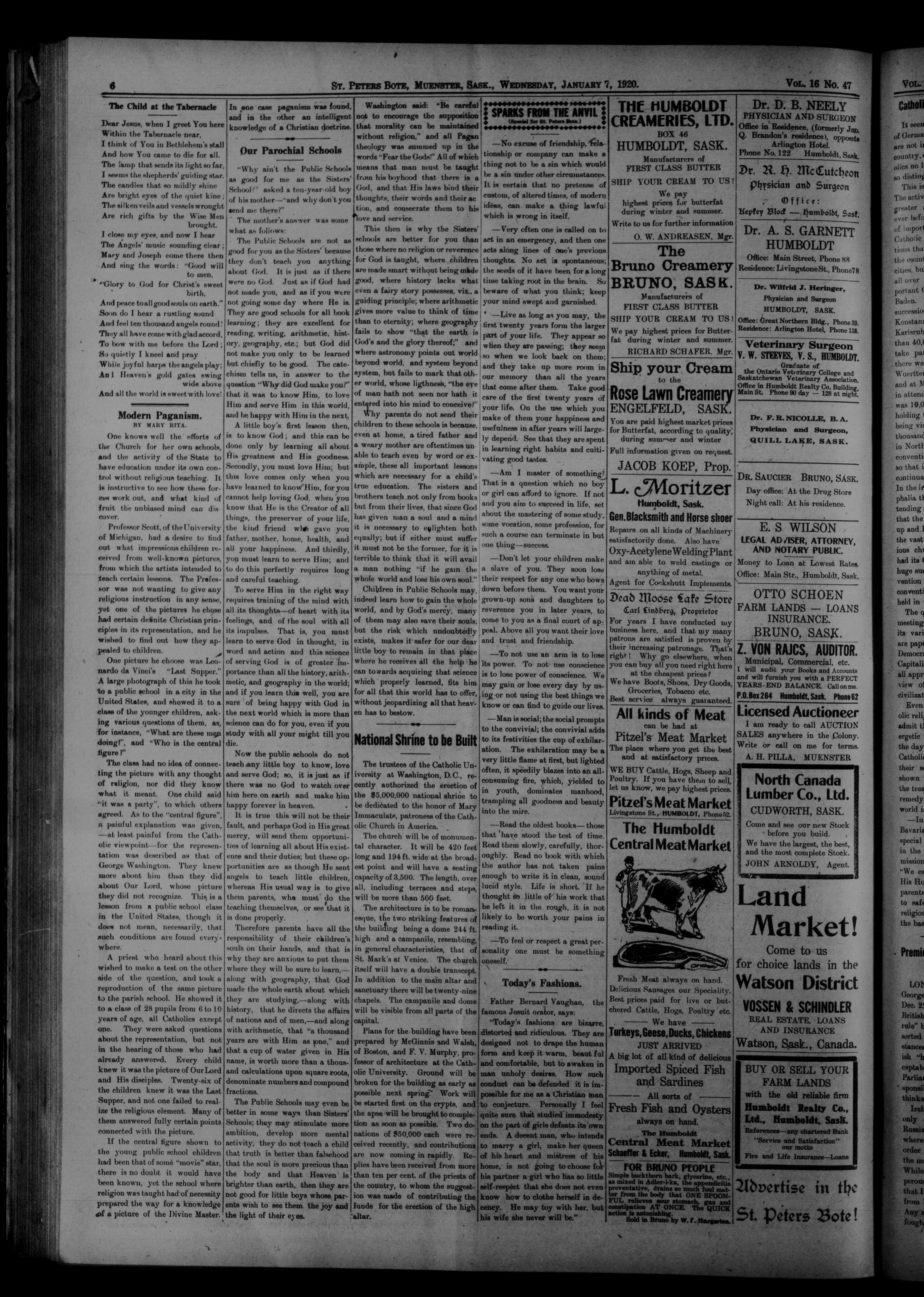 St. Peter's Bote : 16. Jahrgang, No. 47 (7 Januar 1920)