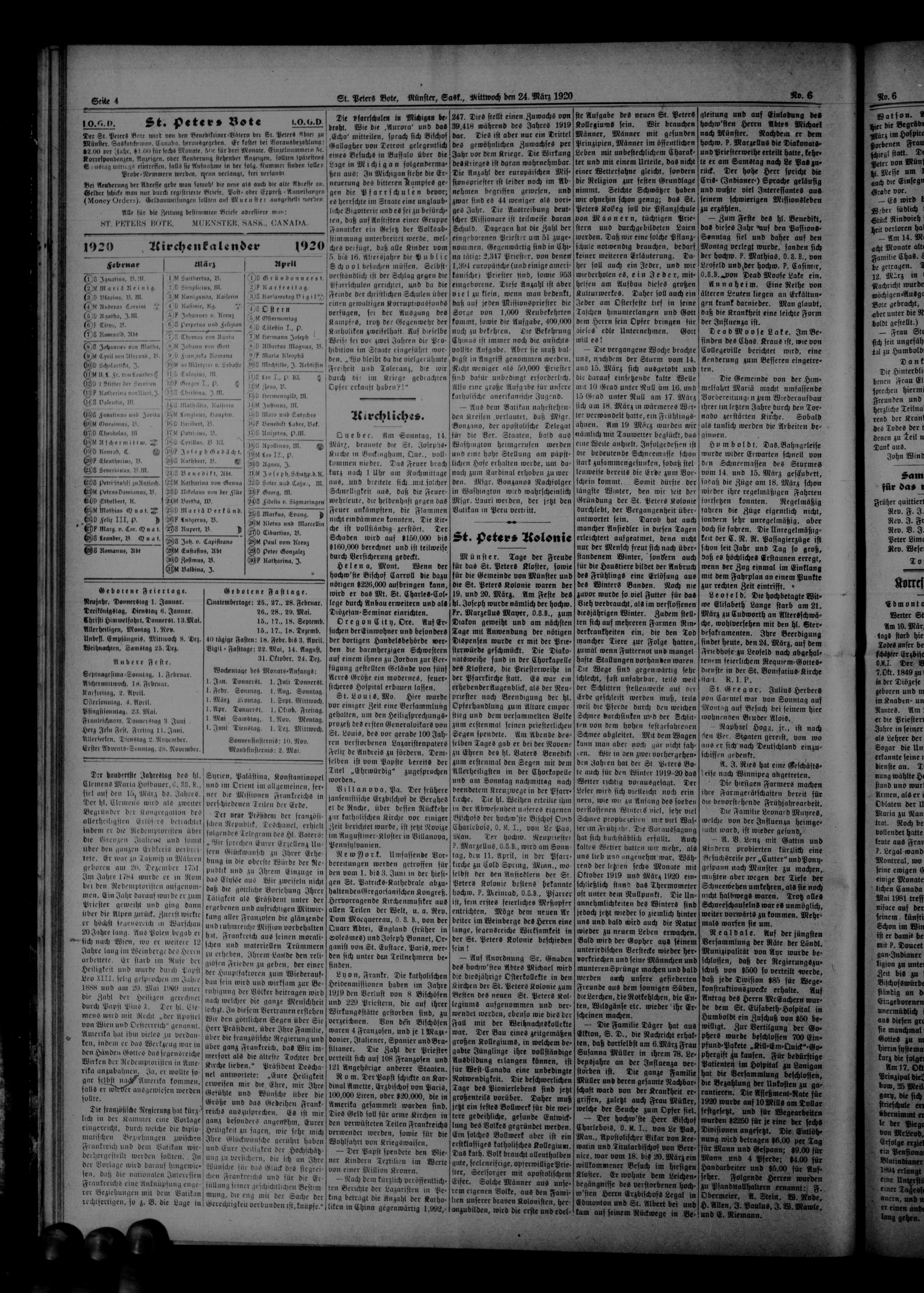 St. Peter's Bote : 17. Jahrgang, No. 6 (24 März 1920)