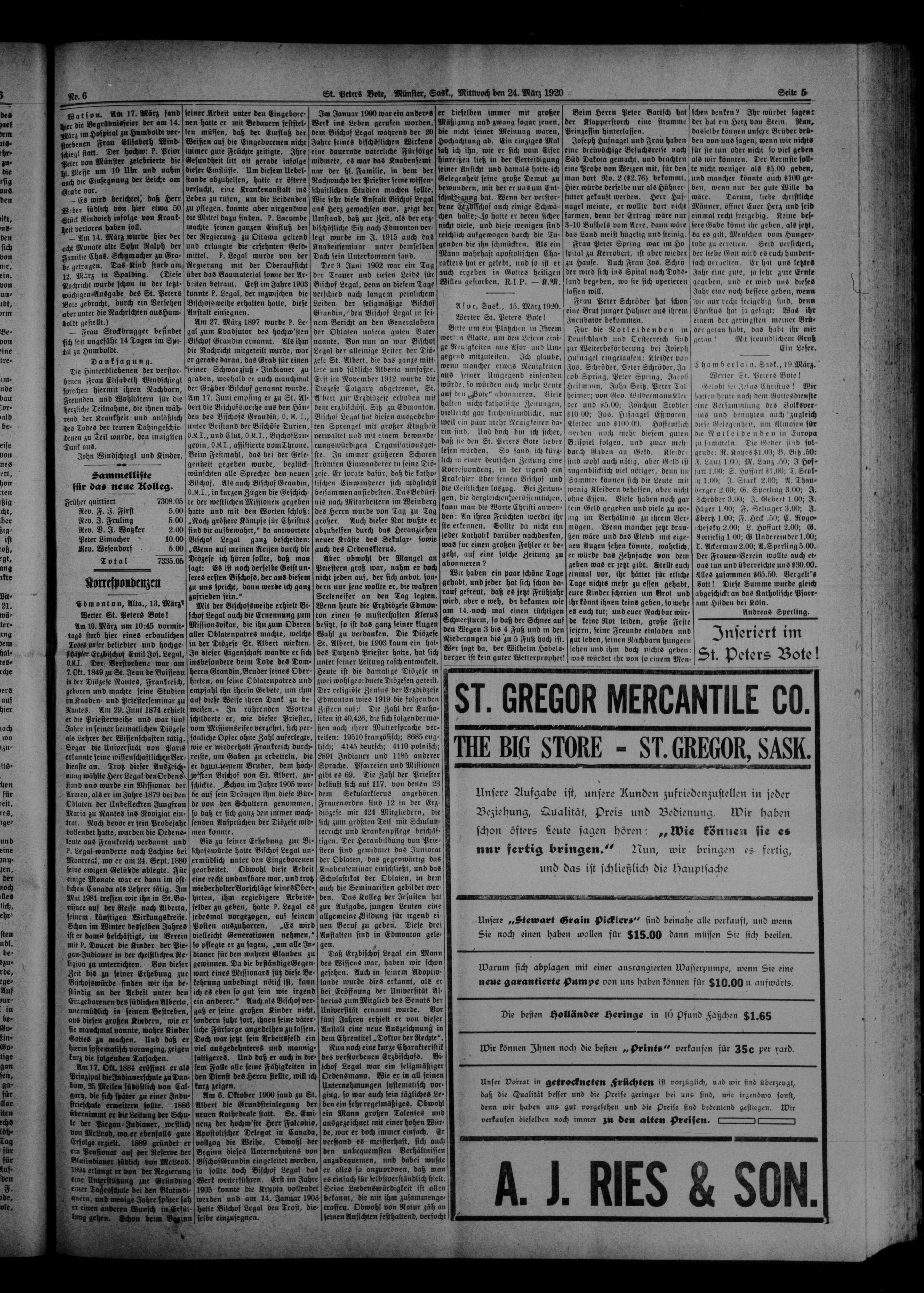 St. Peter's Bote : 17. Jahrgang, No. 6 (24 März 1920)
