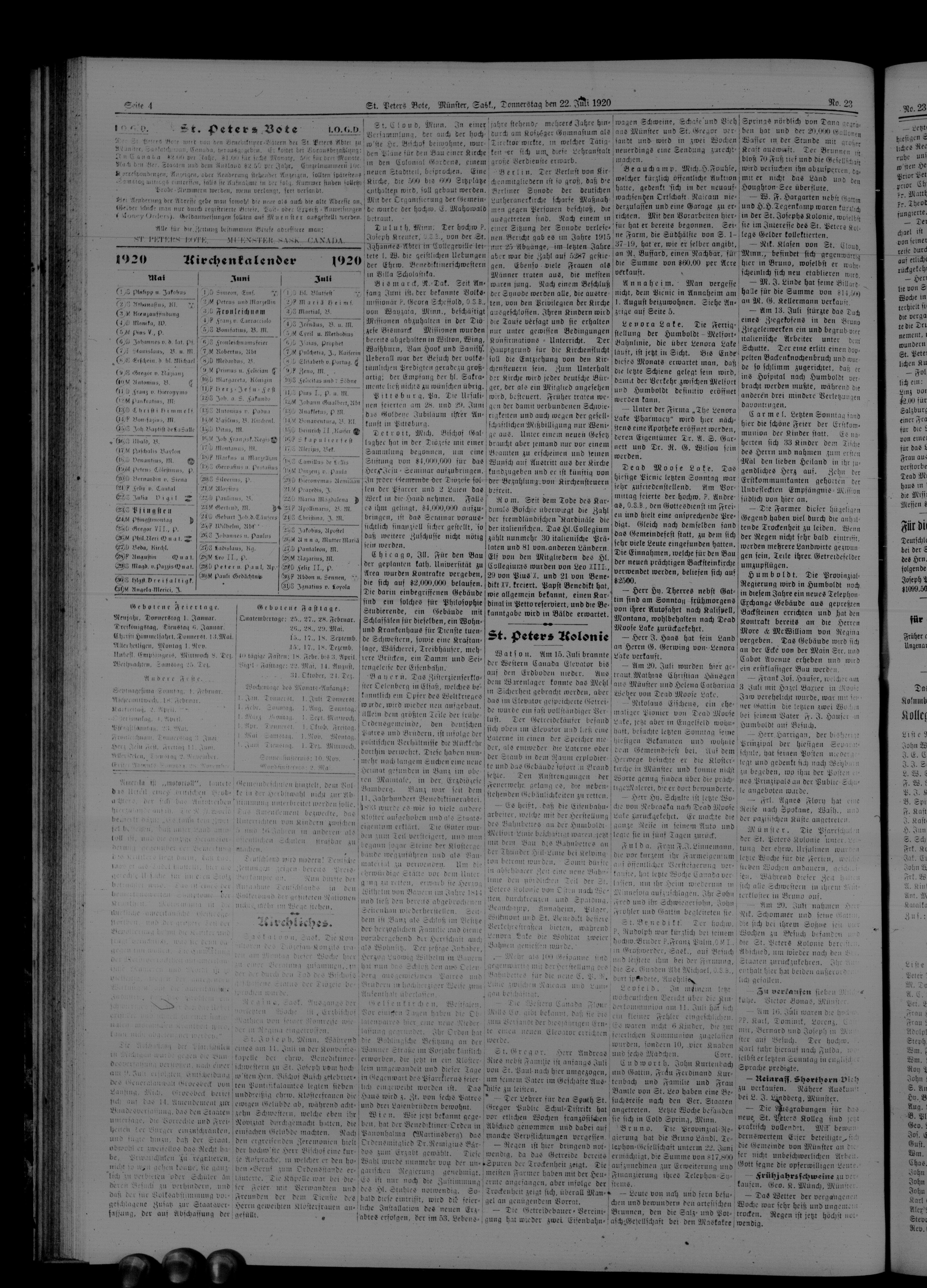 St. Peter's Bote : 17. Jahrgang, No. 23 (22 Juli 1920)
