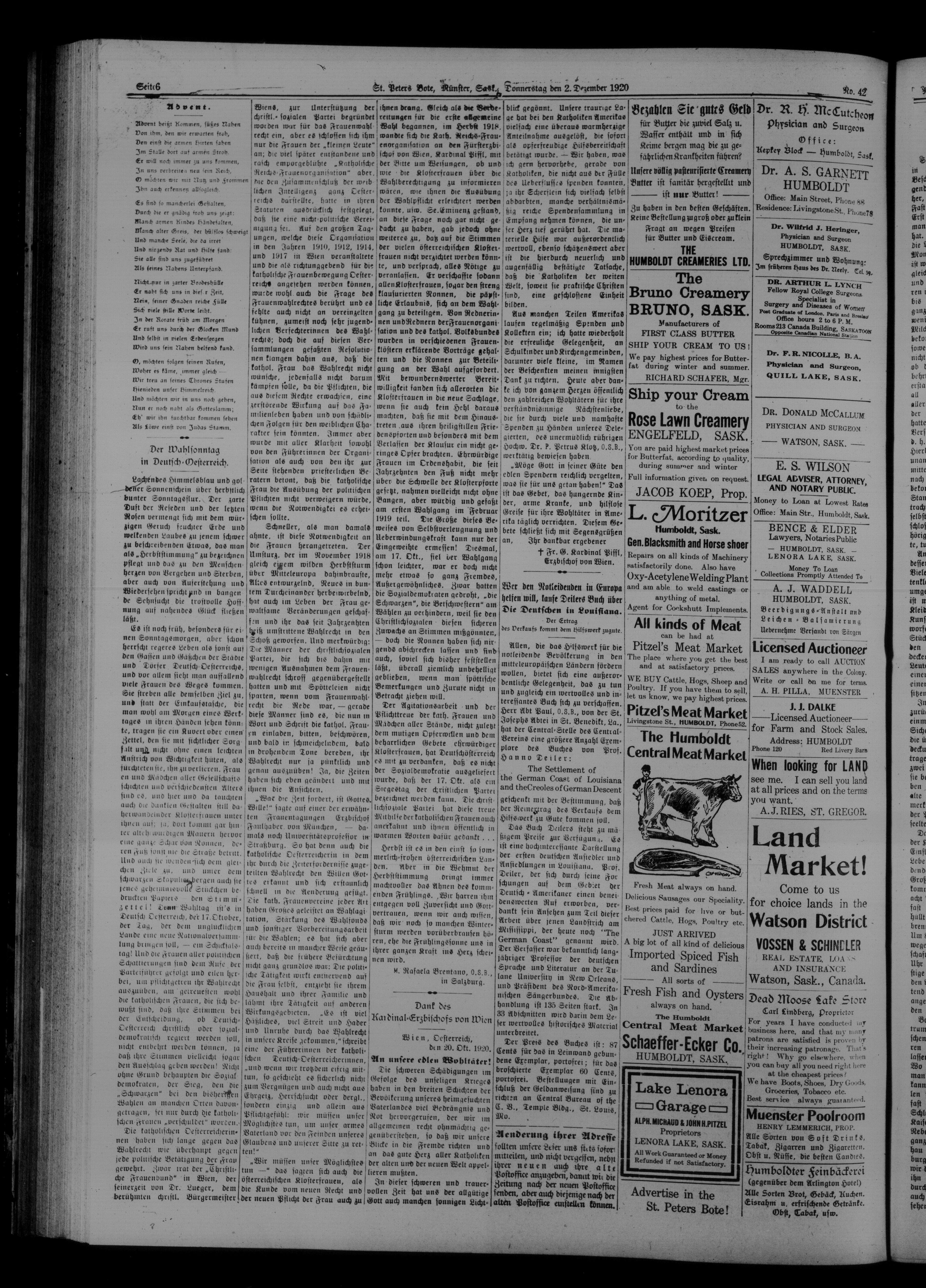 St. Peter's Bote : 17. Jahrgang, No. 42 (2 Dezember 1920)