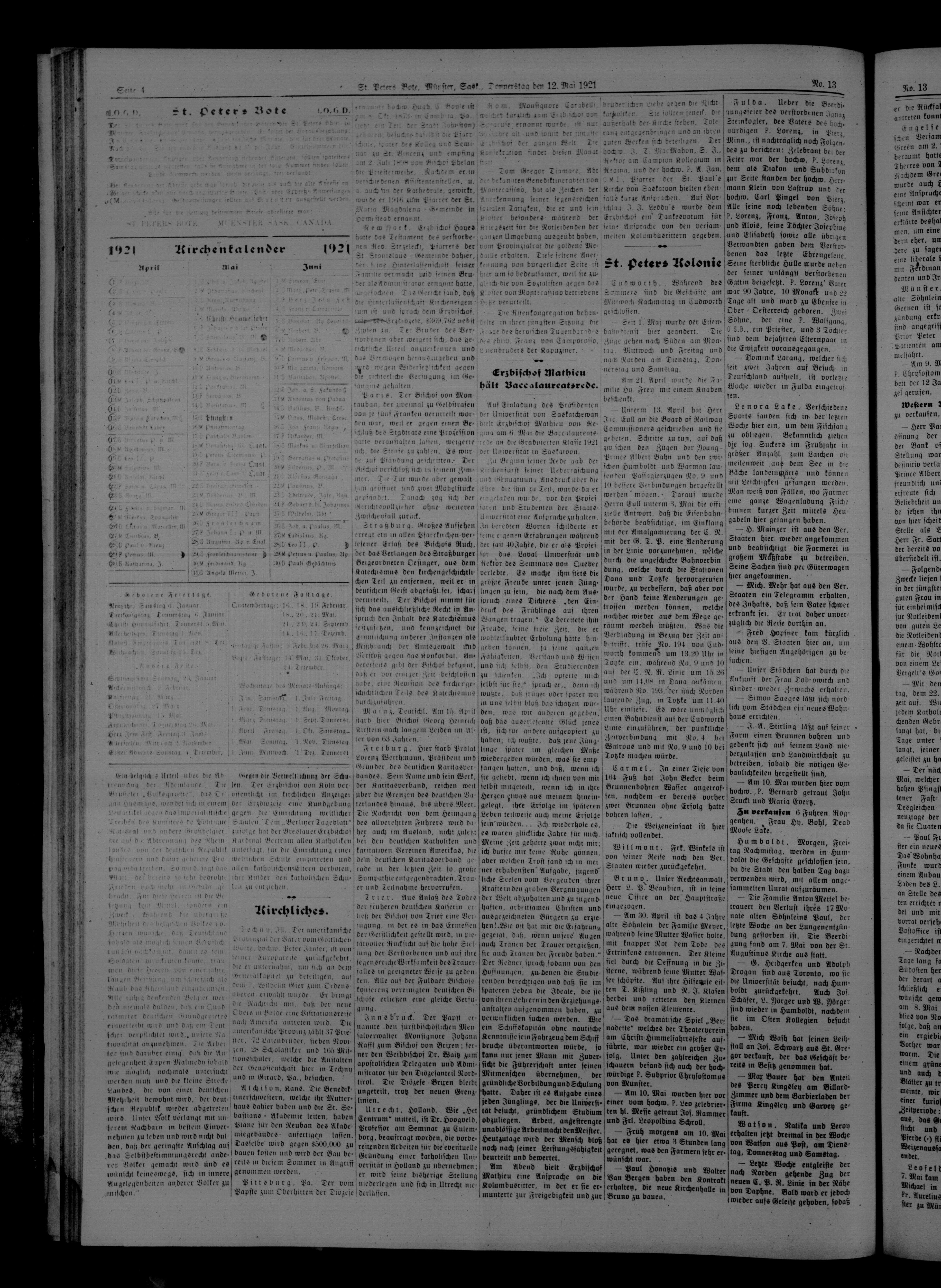 St. Peter's Bote : 18. Jahrgang, No 13 (12 Mai 1921)