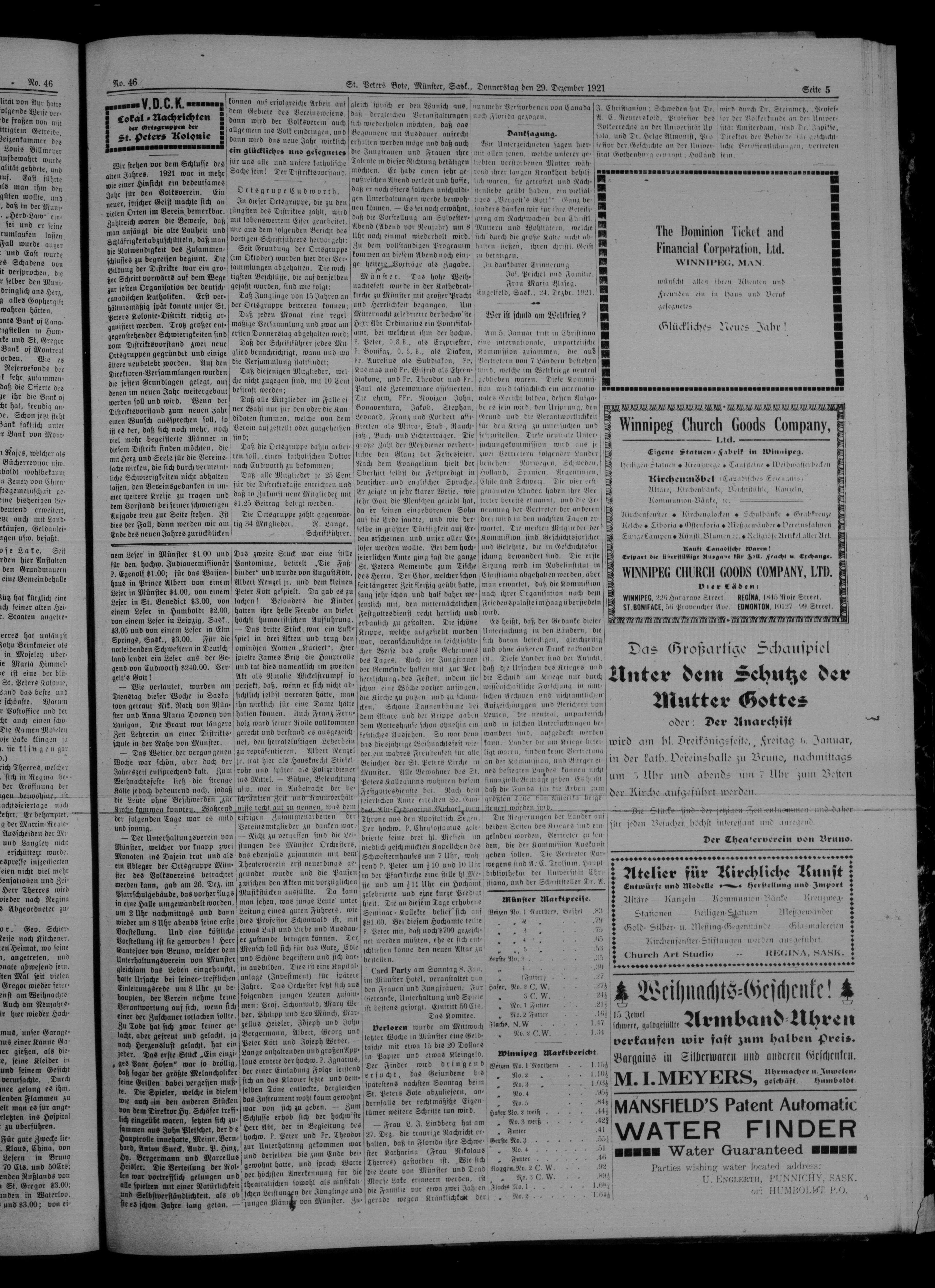 St. Peter's Bote : 18. Jahrgang, No. 46 (29 Dezember 1921)