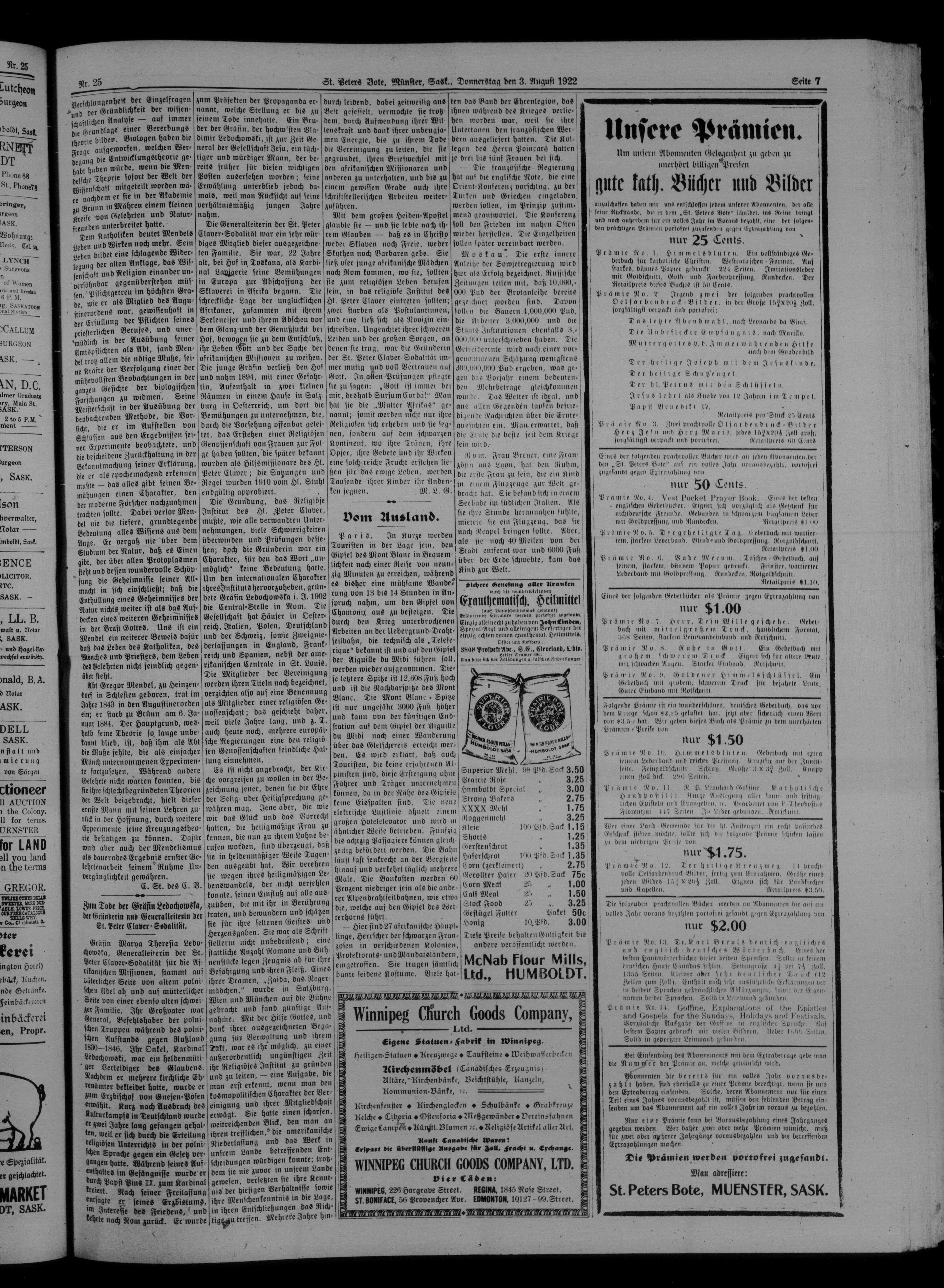 St. Peter's Bote : 19. Jahrgang, No. 25 (3 August 1922)