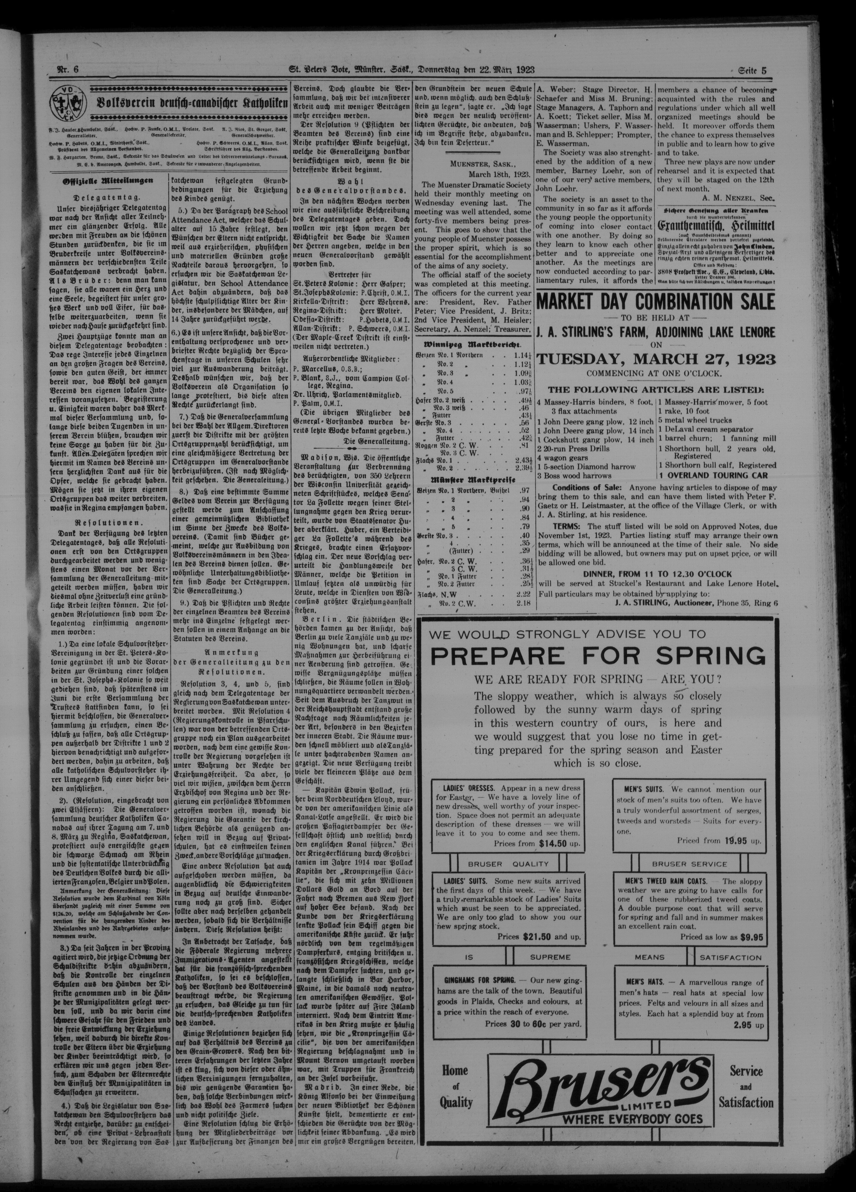 St. Peter's Bote : 20. Jahrgang, No. 6 (22 März 1923)