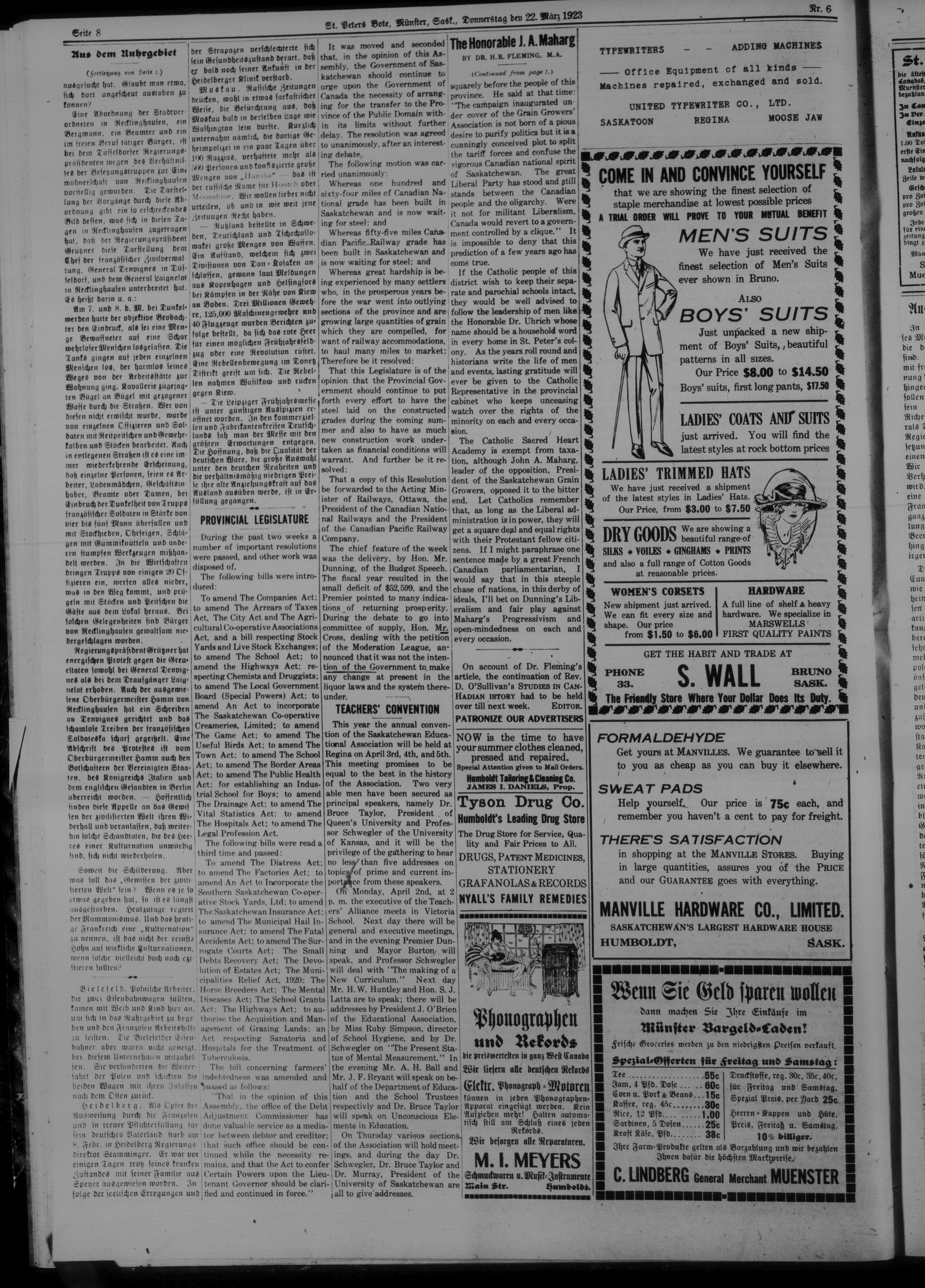 St. Peter's Bote : 20. Jahrgang, No. 6 (22 März 1923)