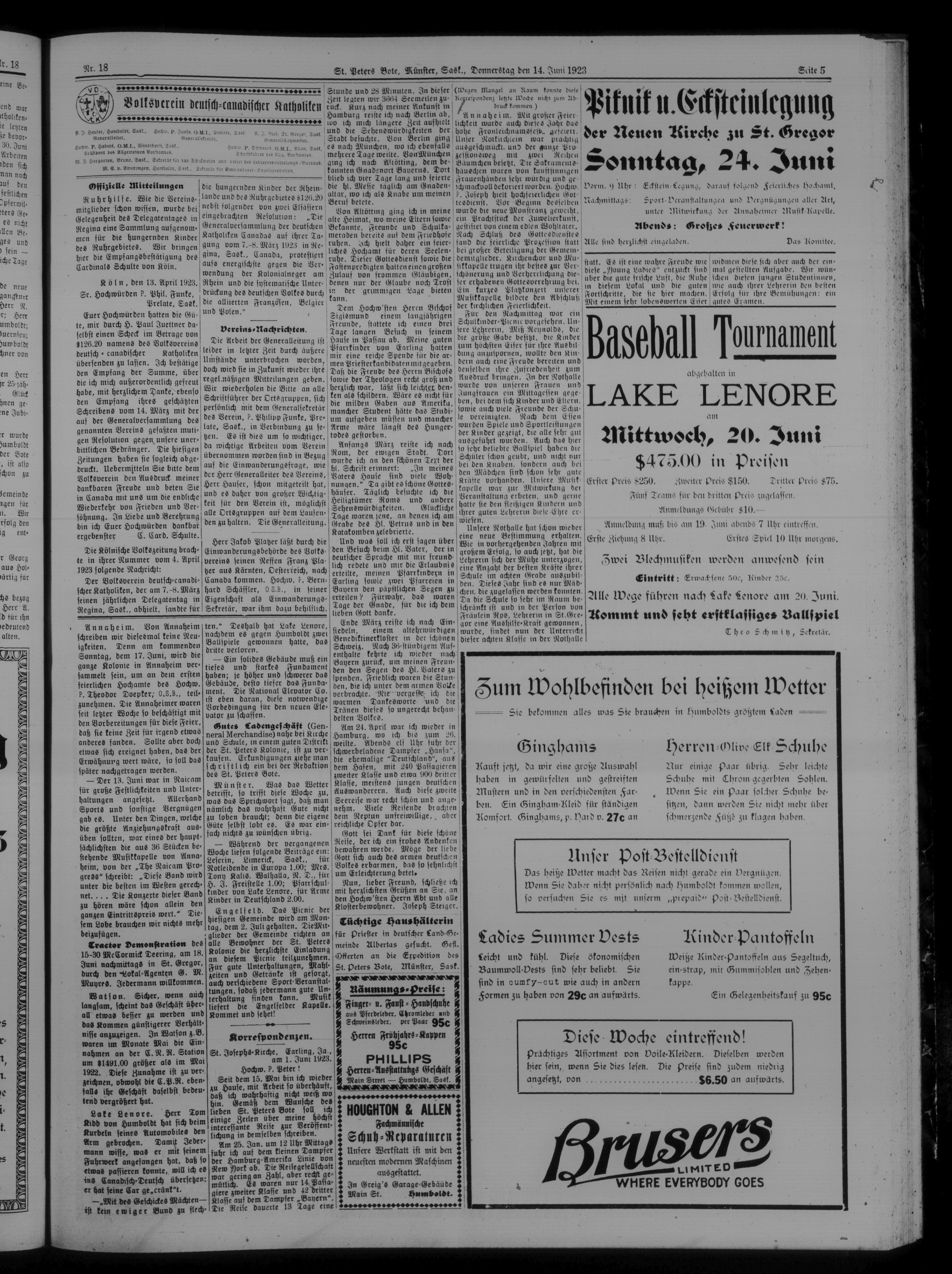 St. Peter's Bote : 20. Jahrgang, No. 18 (14 Juni 1923)