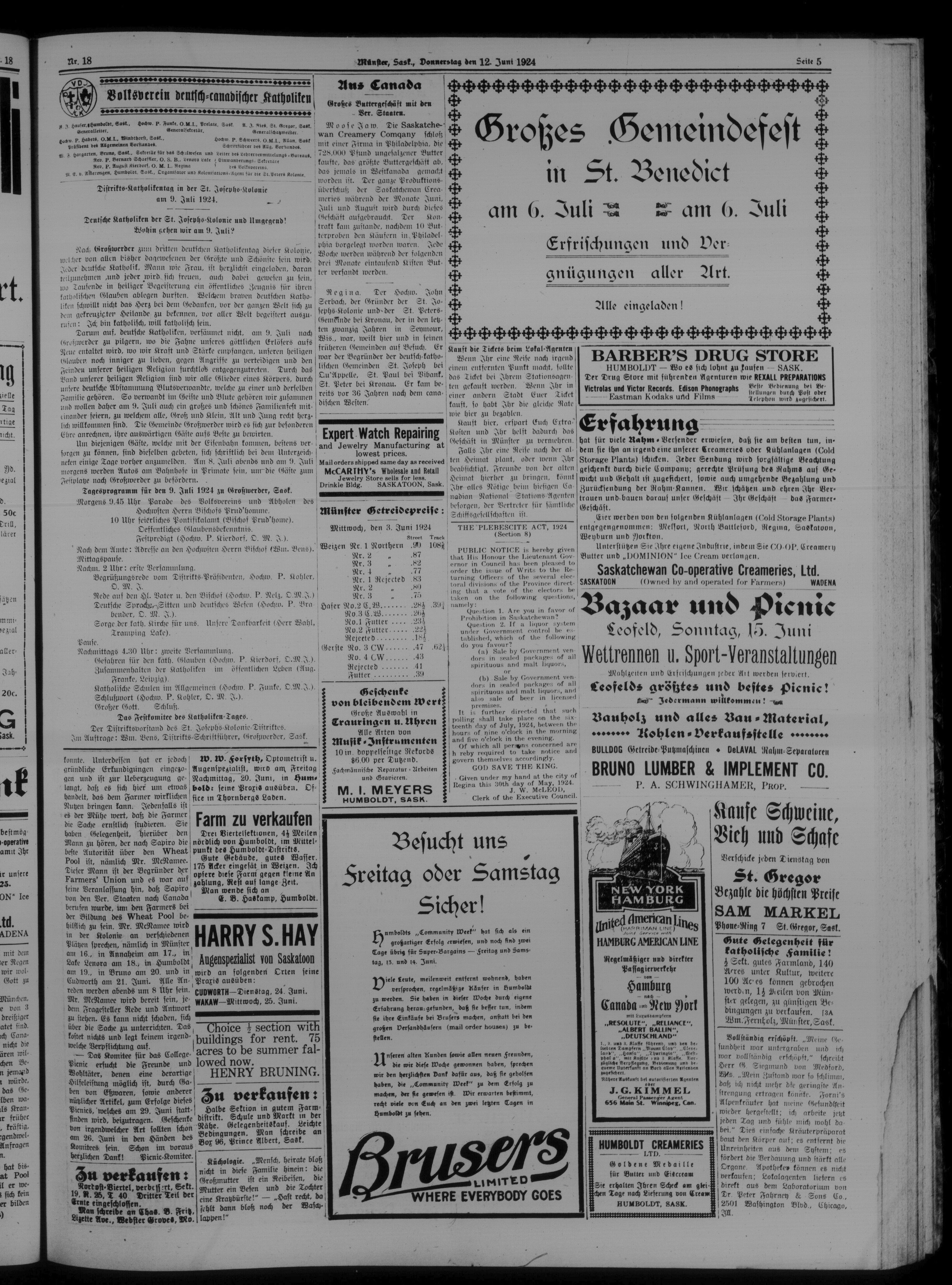 St. Peter's Bote : 21. Jahrgang, No. 18 (12 Juni 1924)