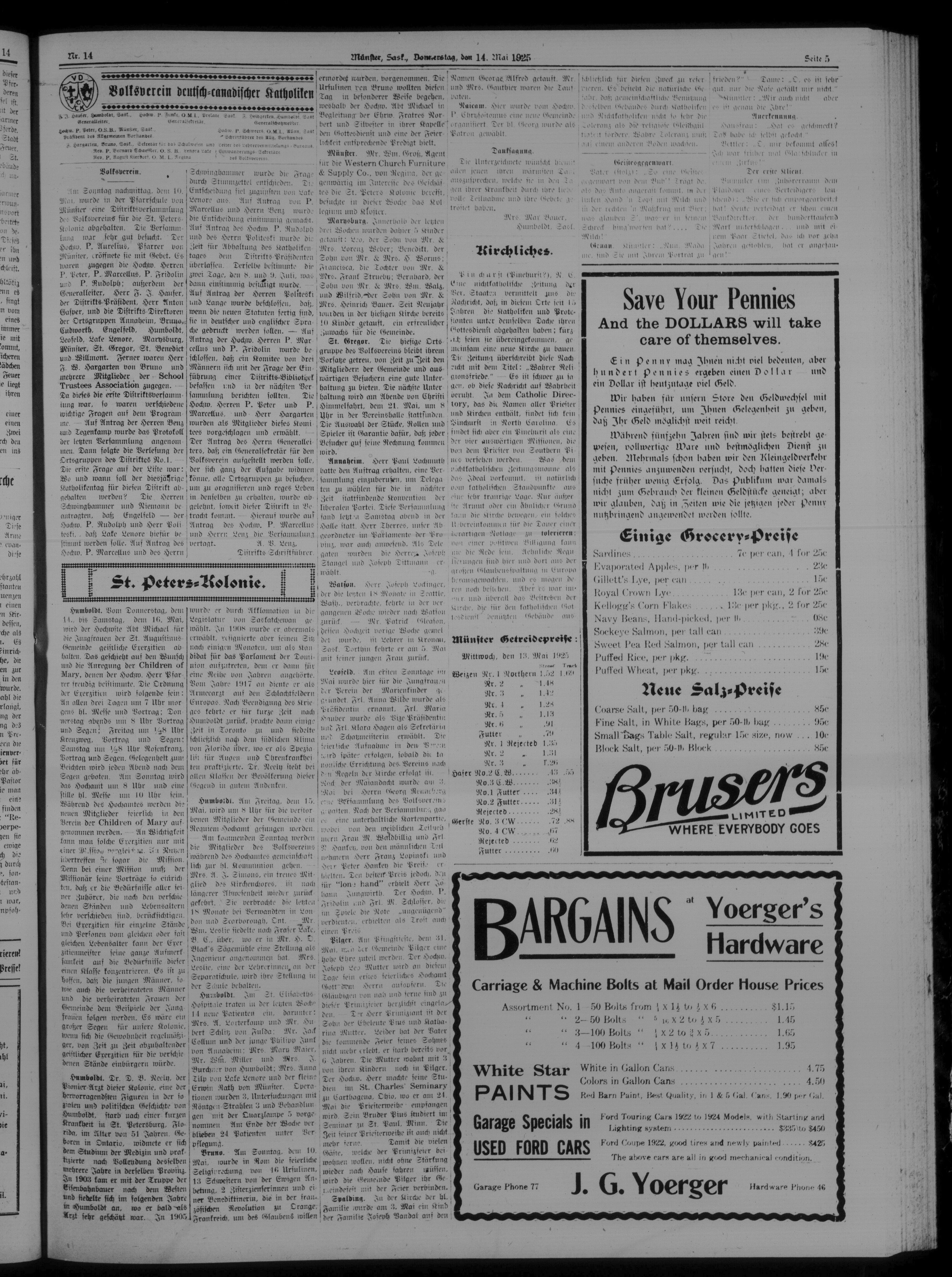 St. Peter's Bote : 22. Jahrgang, No. 14 (14 Mai 1925)