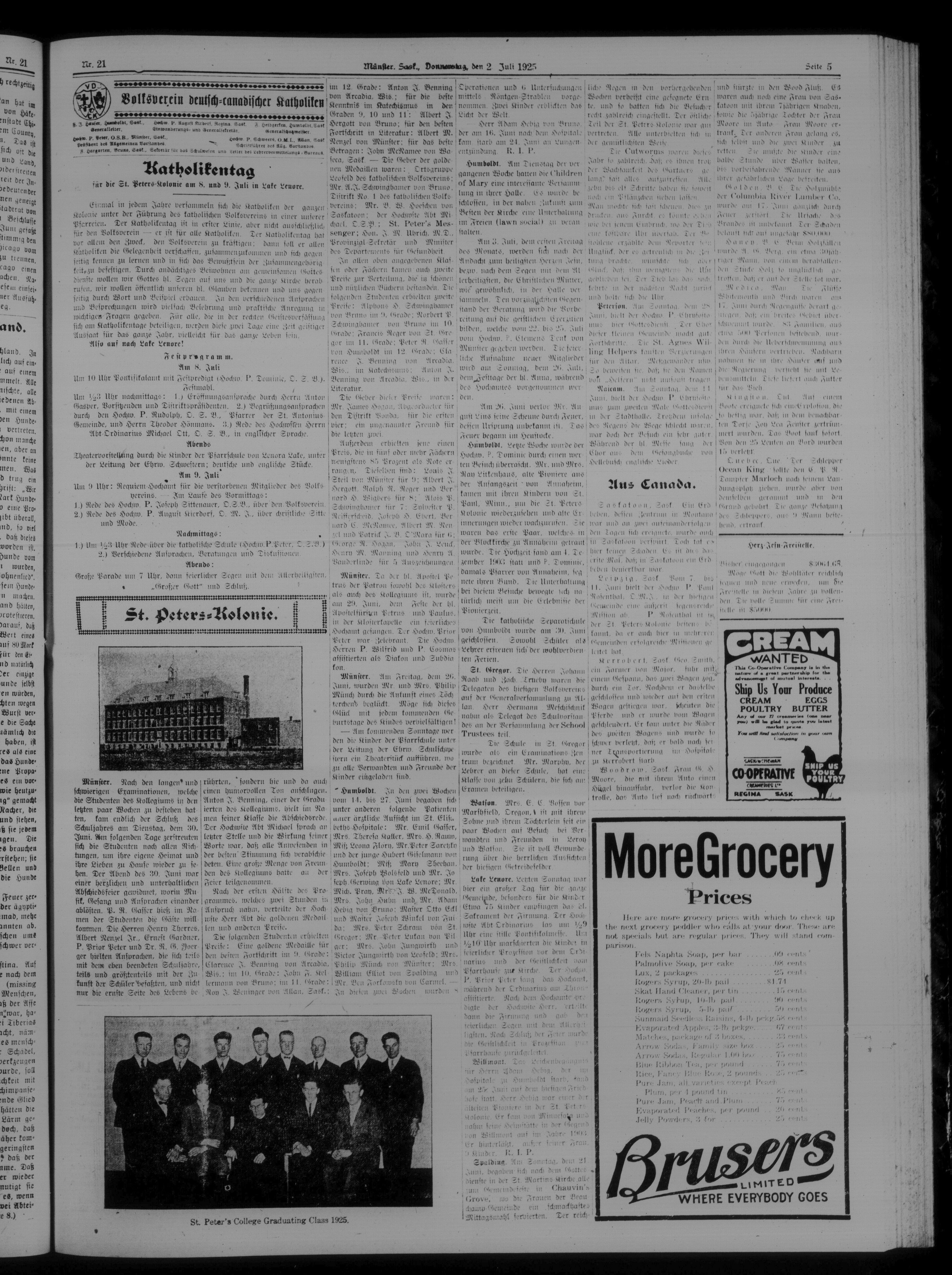 St. Peter's Bote : 22. Jahrgang, No. 21 (2 Juli 1925)