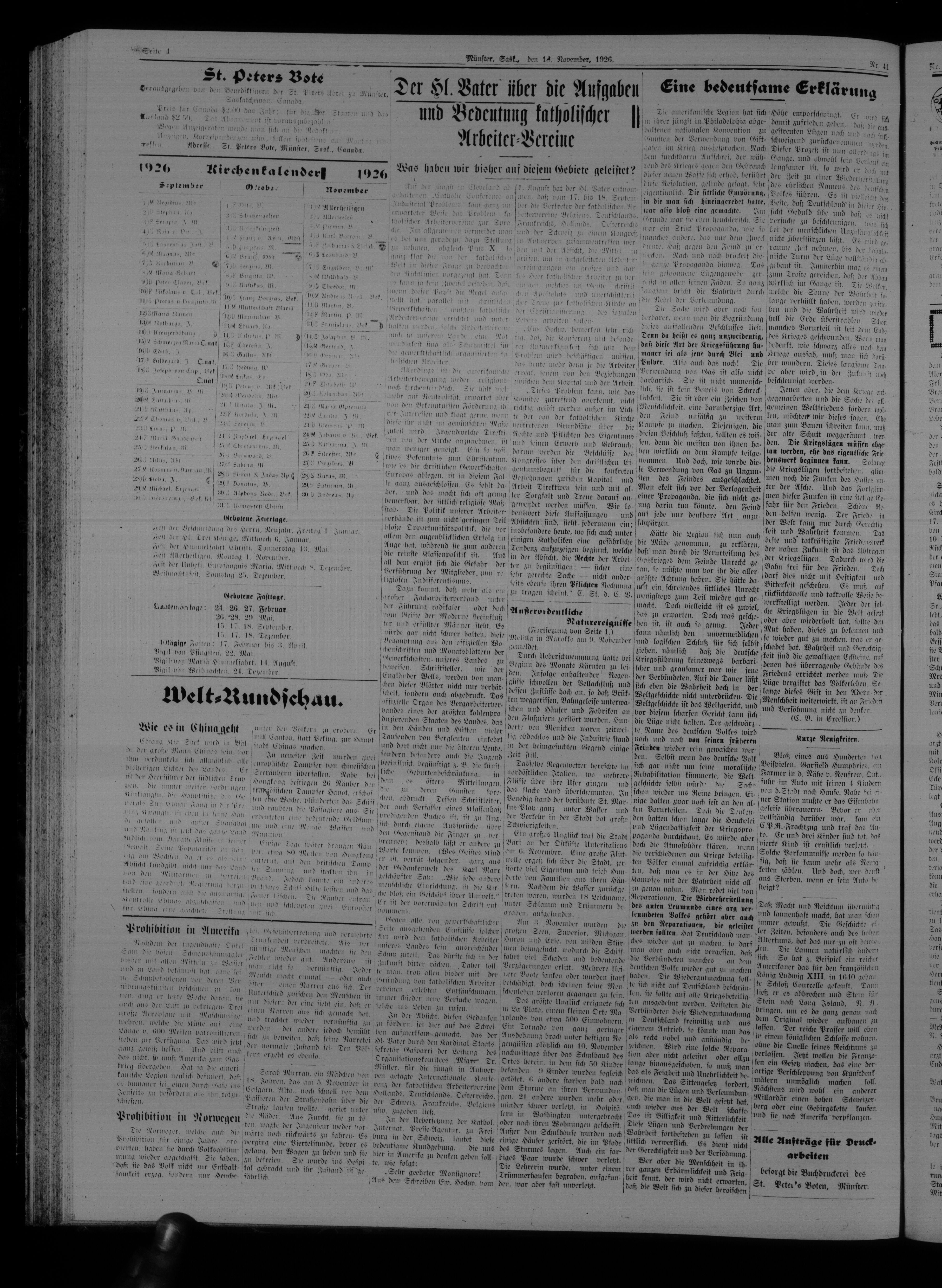 St. Peter's Bote : 23. Jahrgang, No. 41 (18 November 1926)