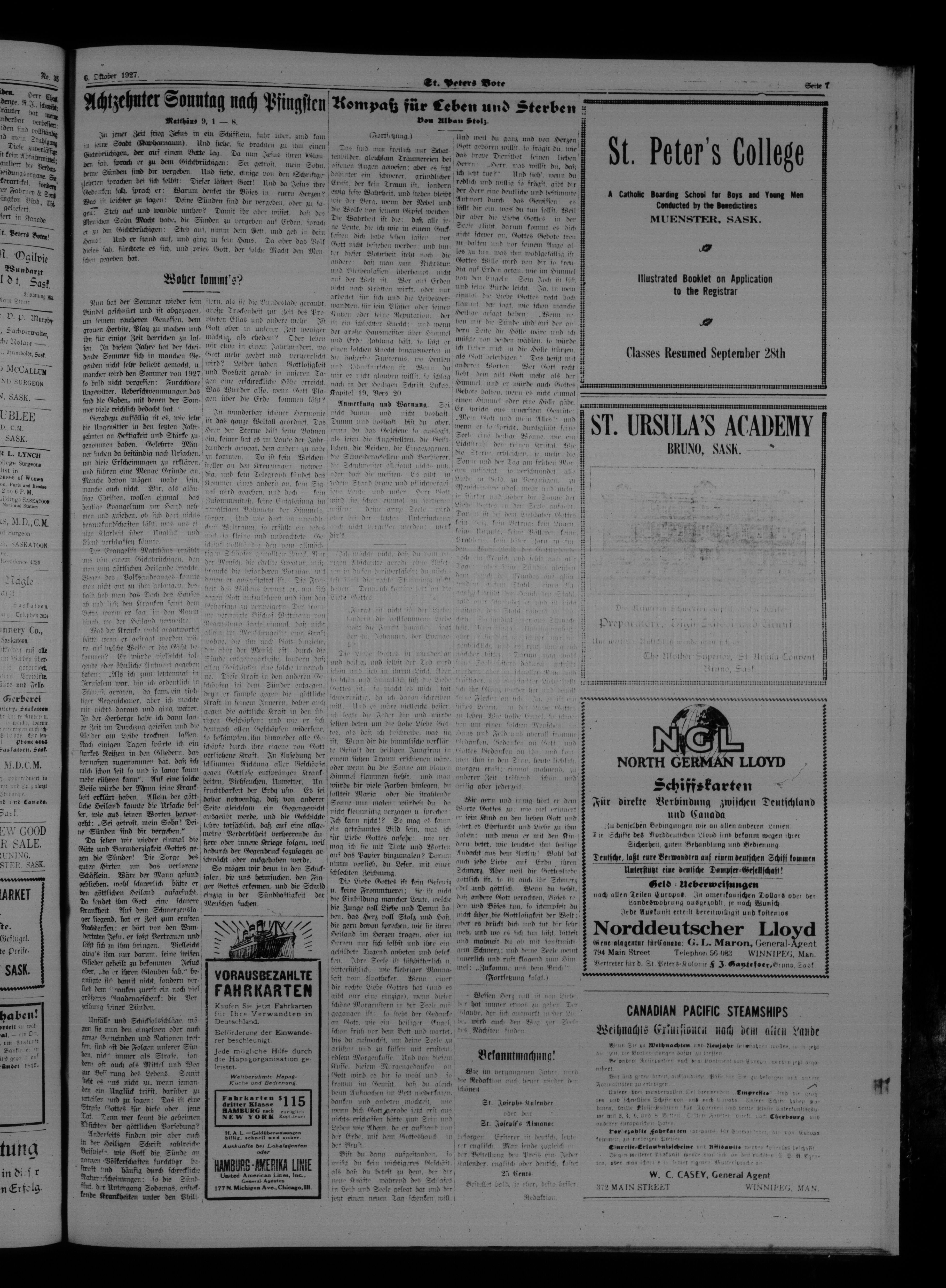 St. Peter's Bote : 24. Jahrgang, No. 35 (6 Oktober 1927)