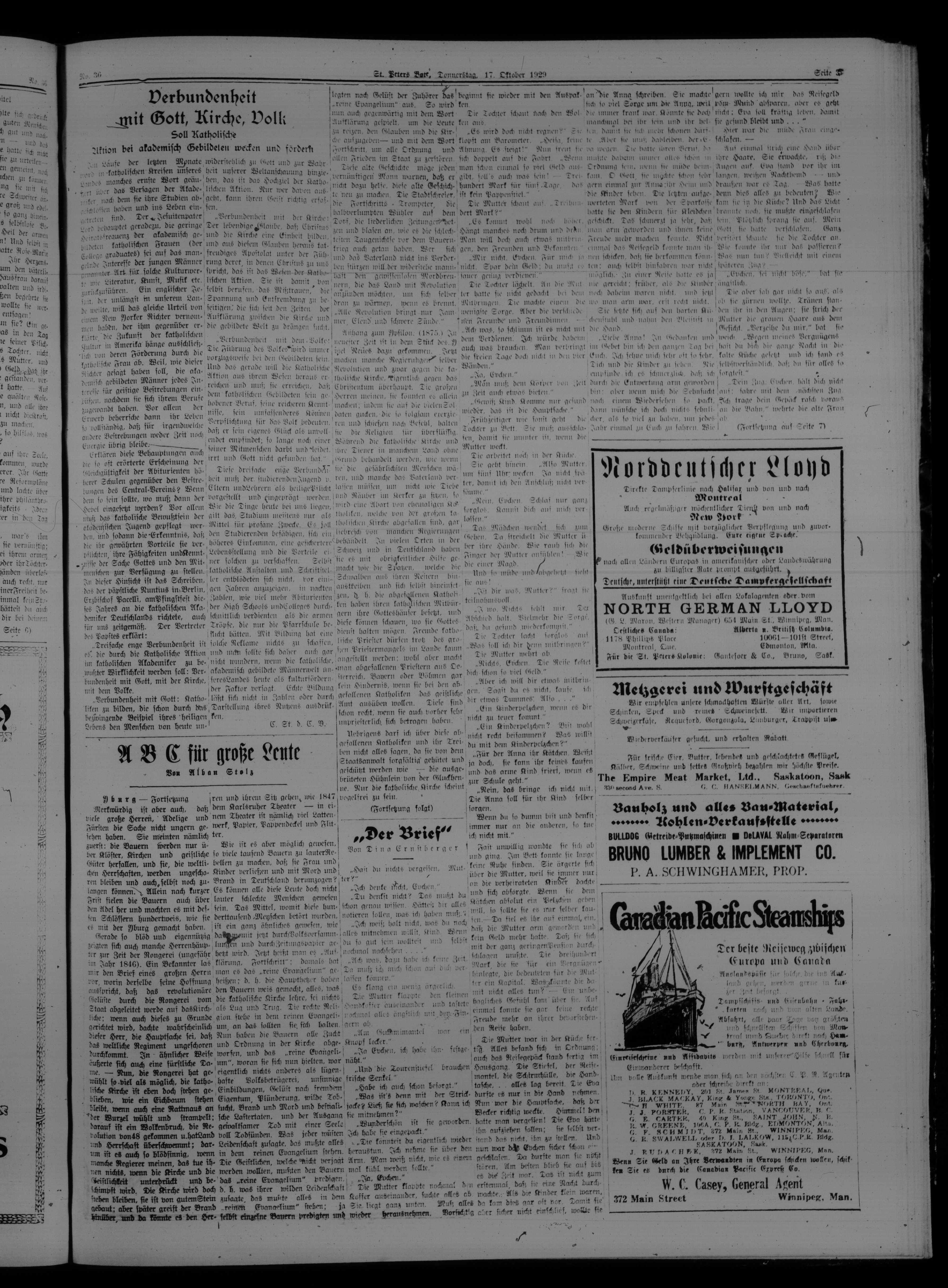 St. Peter's Bote : 26. Jahrgang, No. 36 (17 Oktober 1929)
