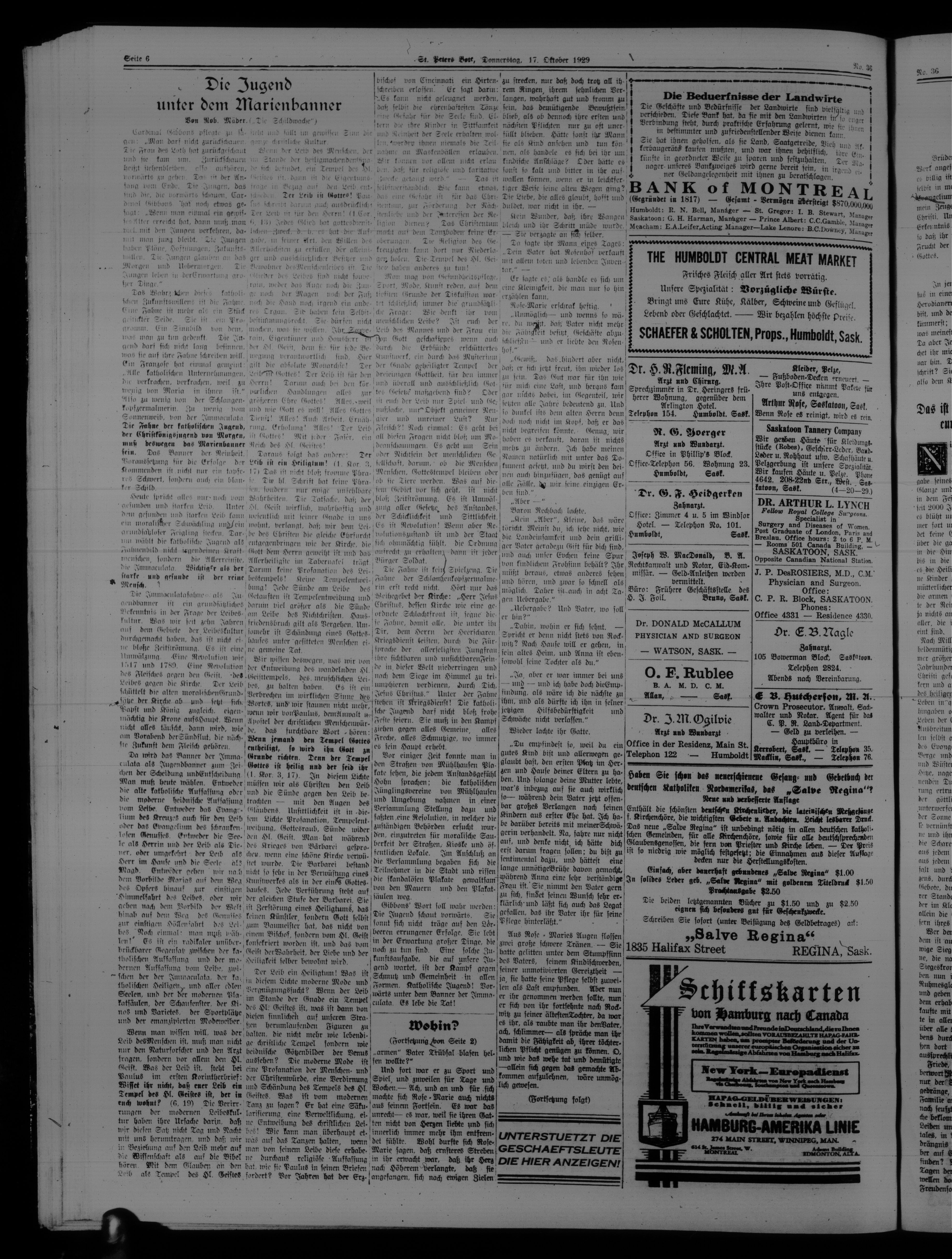 St. Peter's Bote : 26. Jahrgang, No. 36 (17 Oktober 1929)
