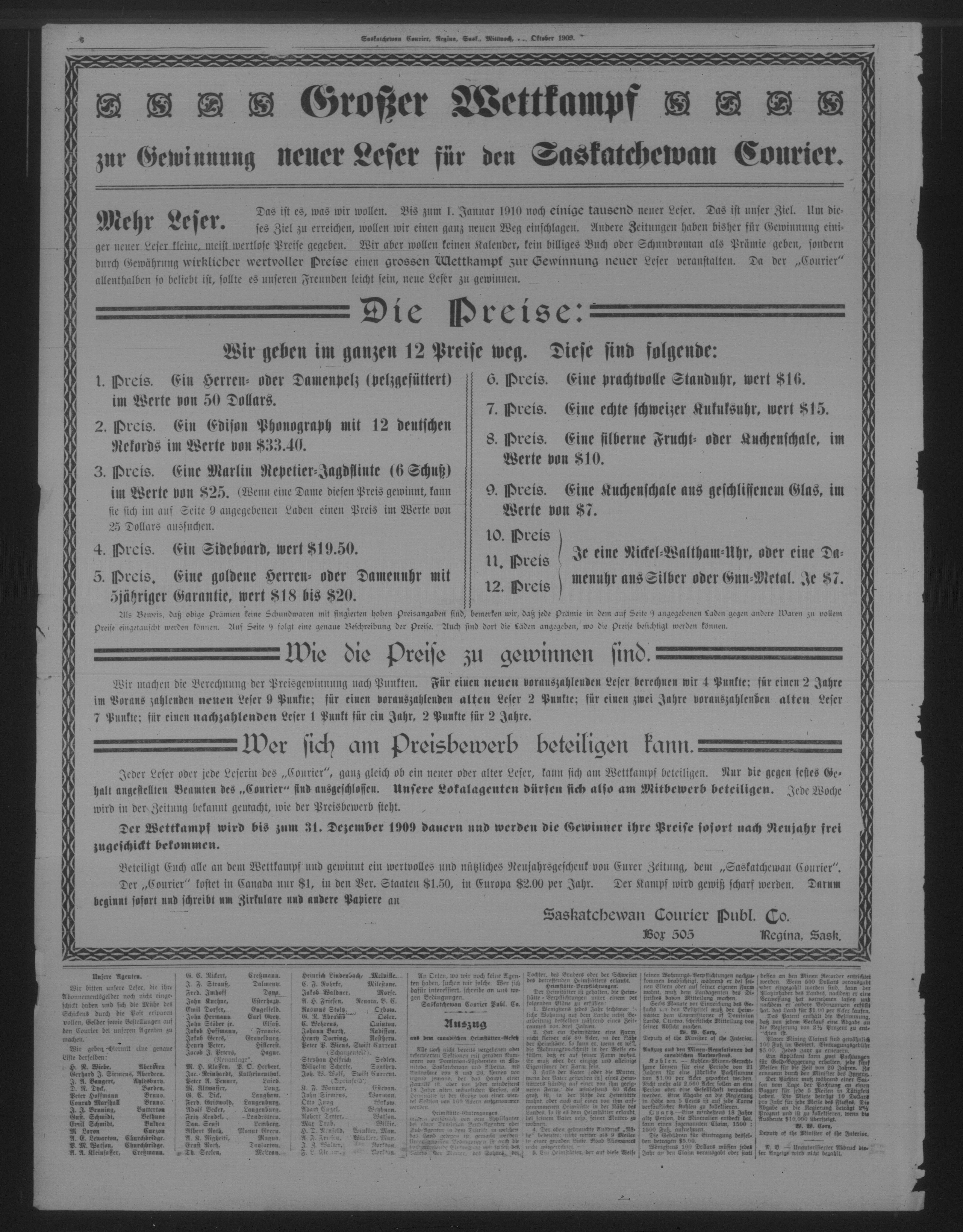 Saskatchewan courier : 3. Jahrgang, No. 1 (27 Oktober 1909)