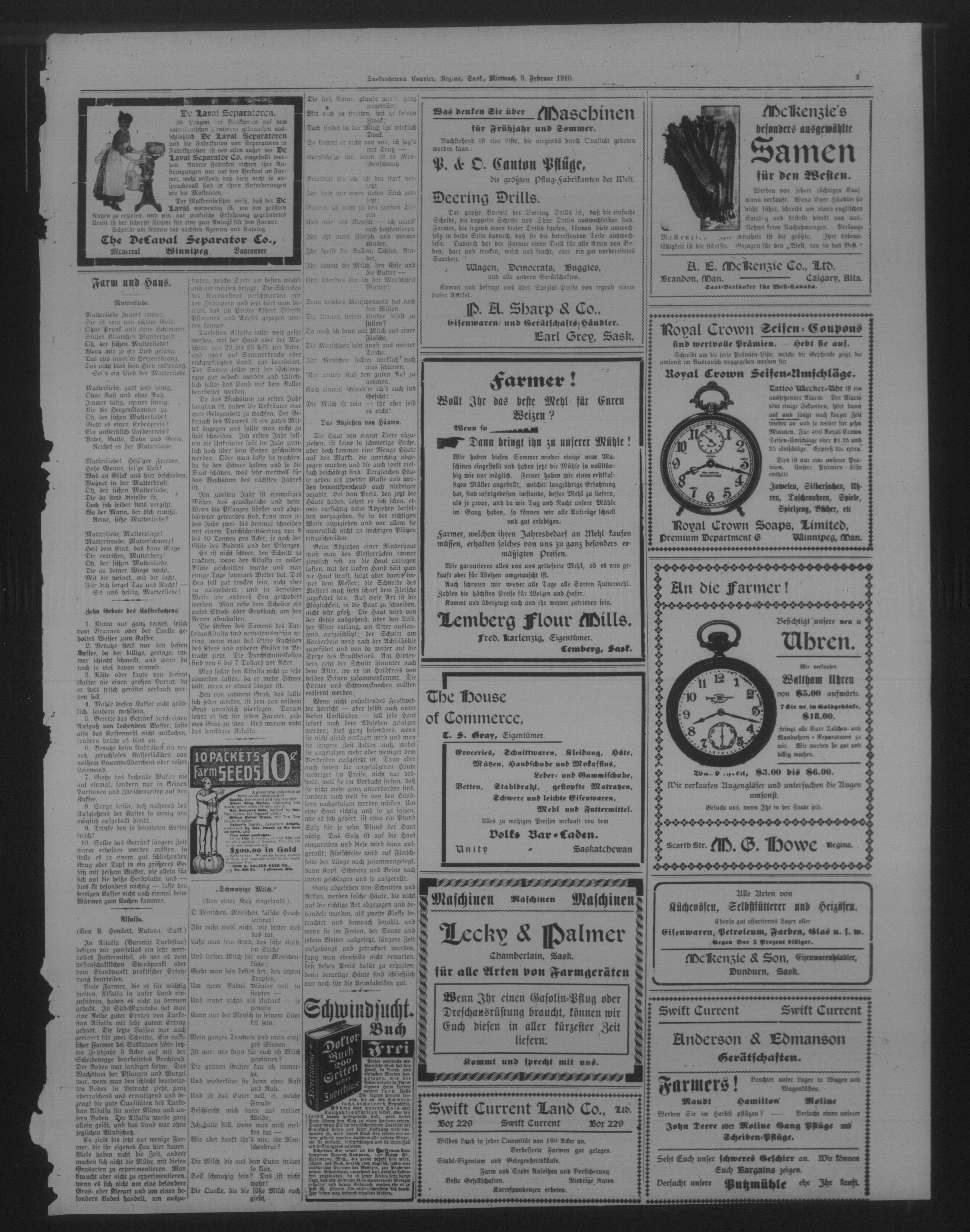 Saskatchewan courier : 3. Jahrgang, No. 16 (9 Februar 1910)