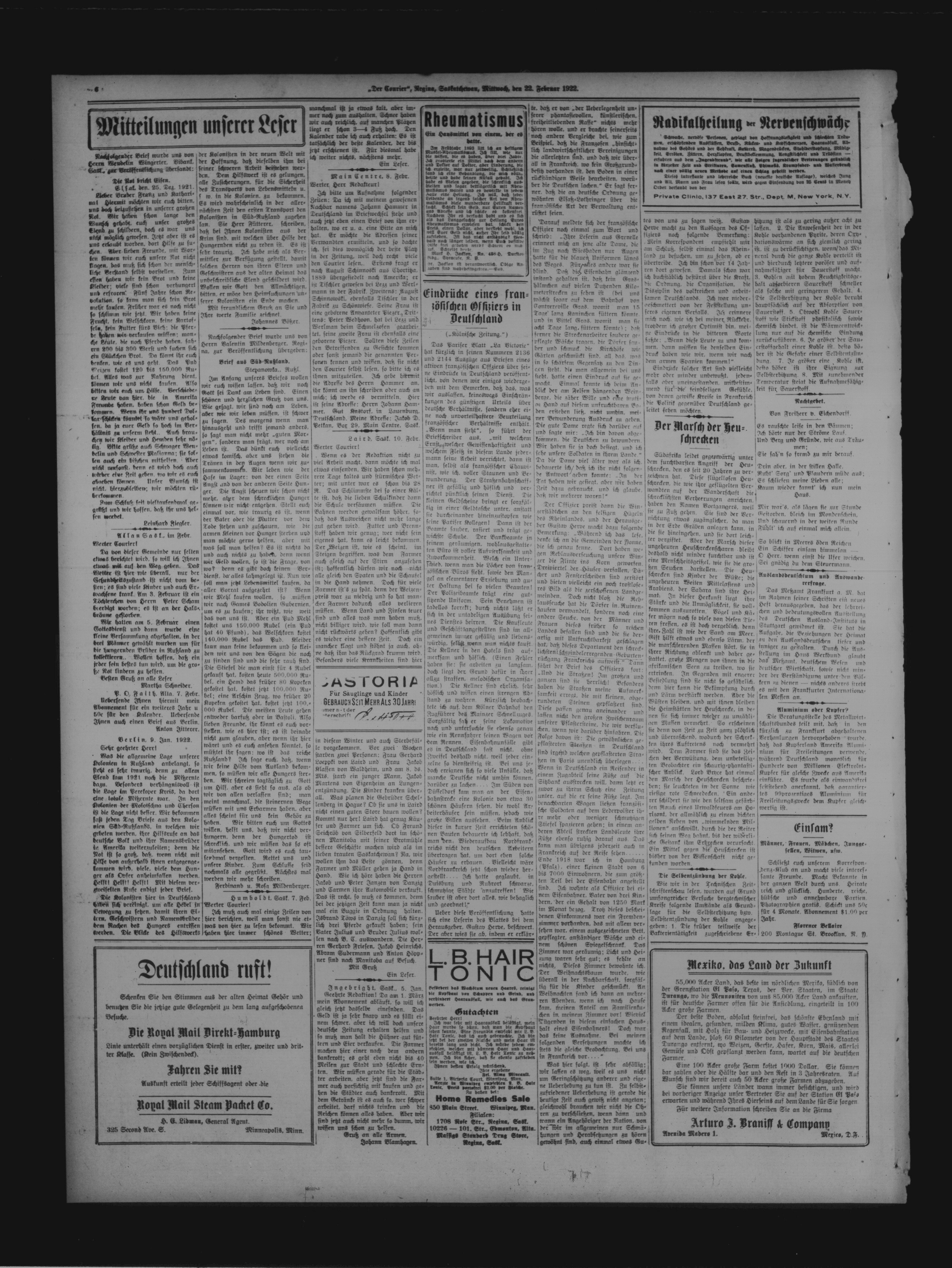 Der Courier : 15. Jahrgang, Nummer 16 (22 Februar 1922)