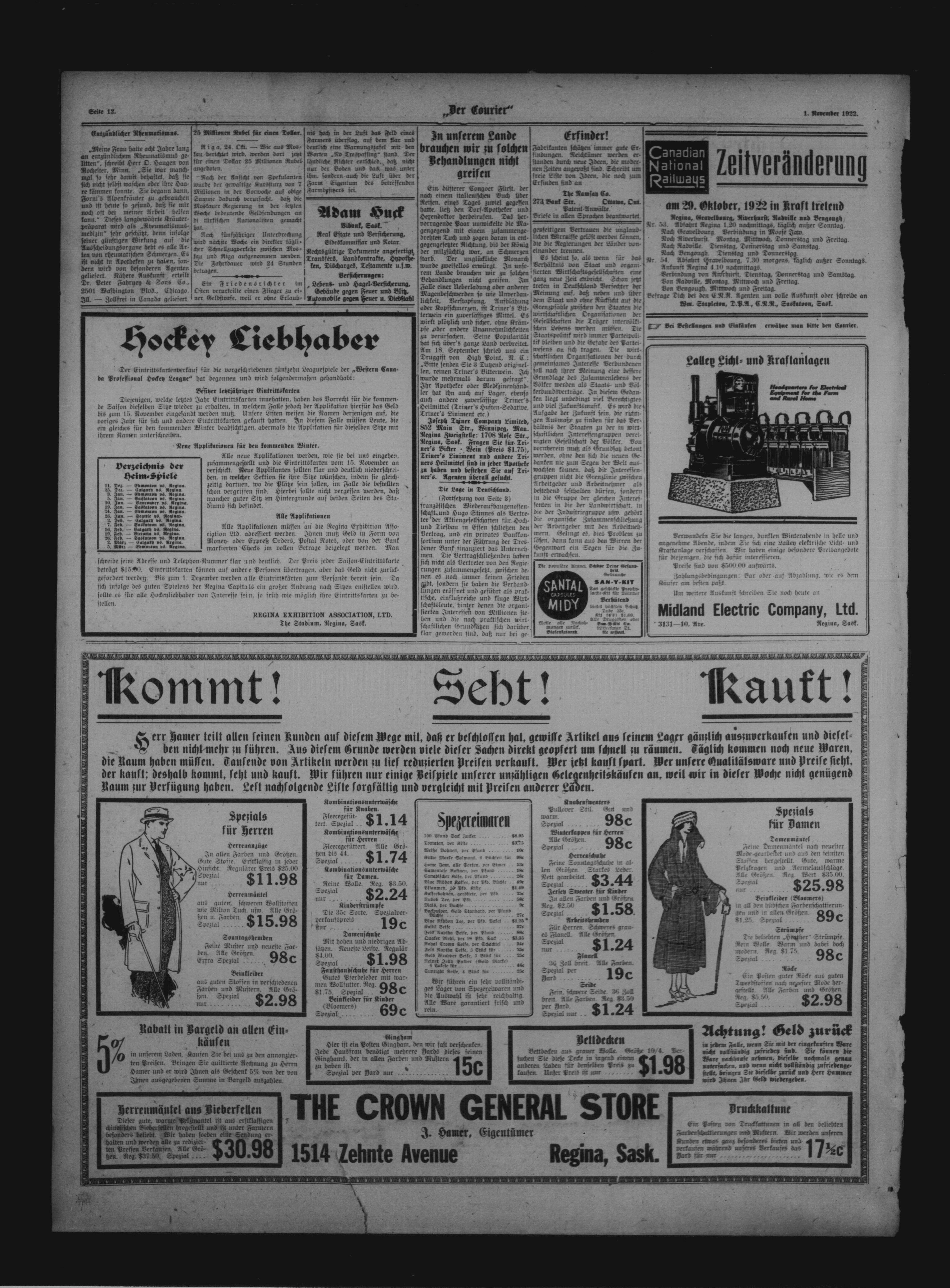 Der Courier : 15. Jahrgang, Nummer 52 (1 November 1922)