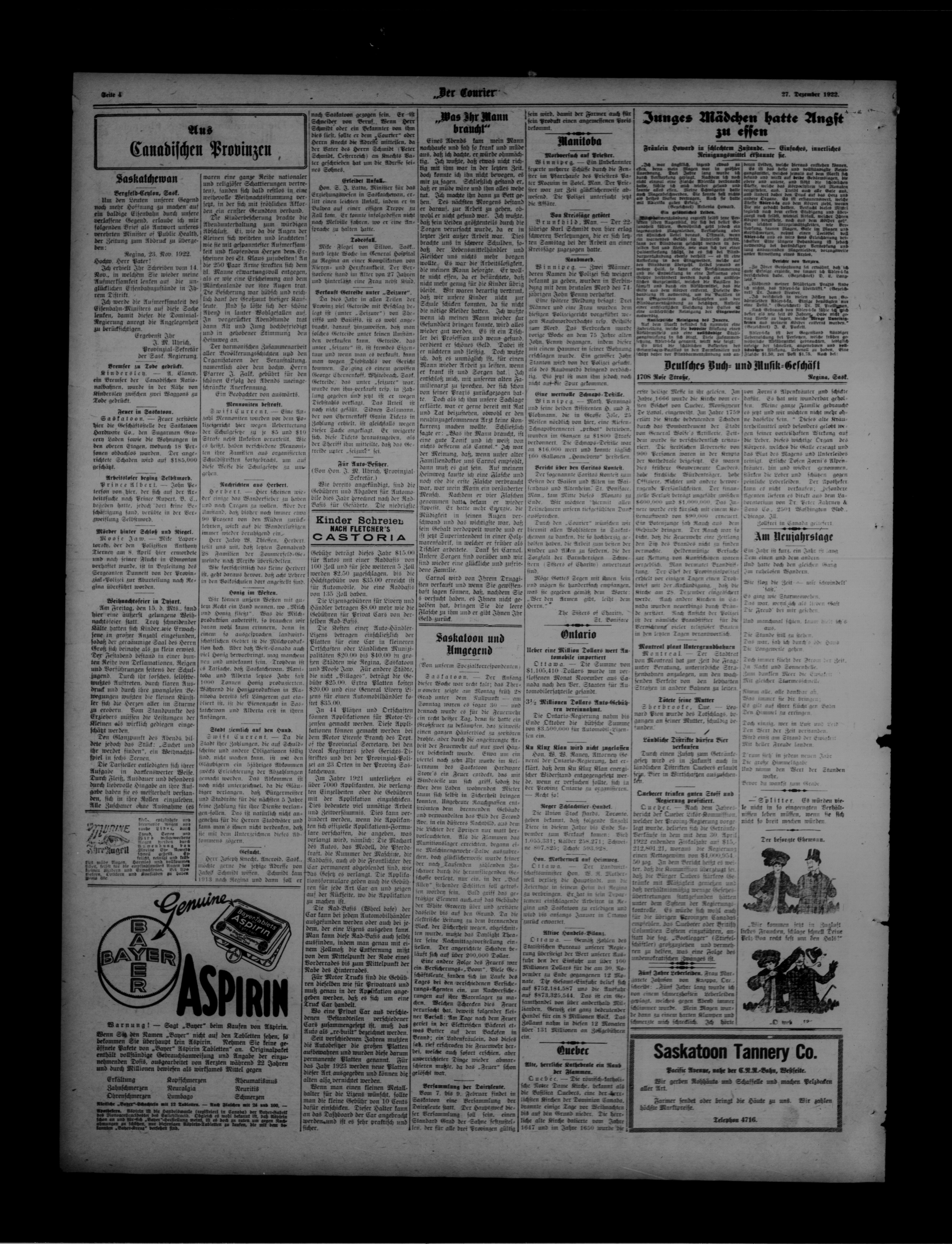 Der Courier : 16. Jahrgang, Nummer 8 (27 Dezember 1922)