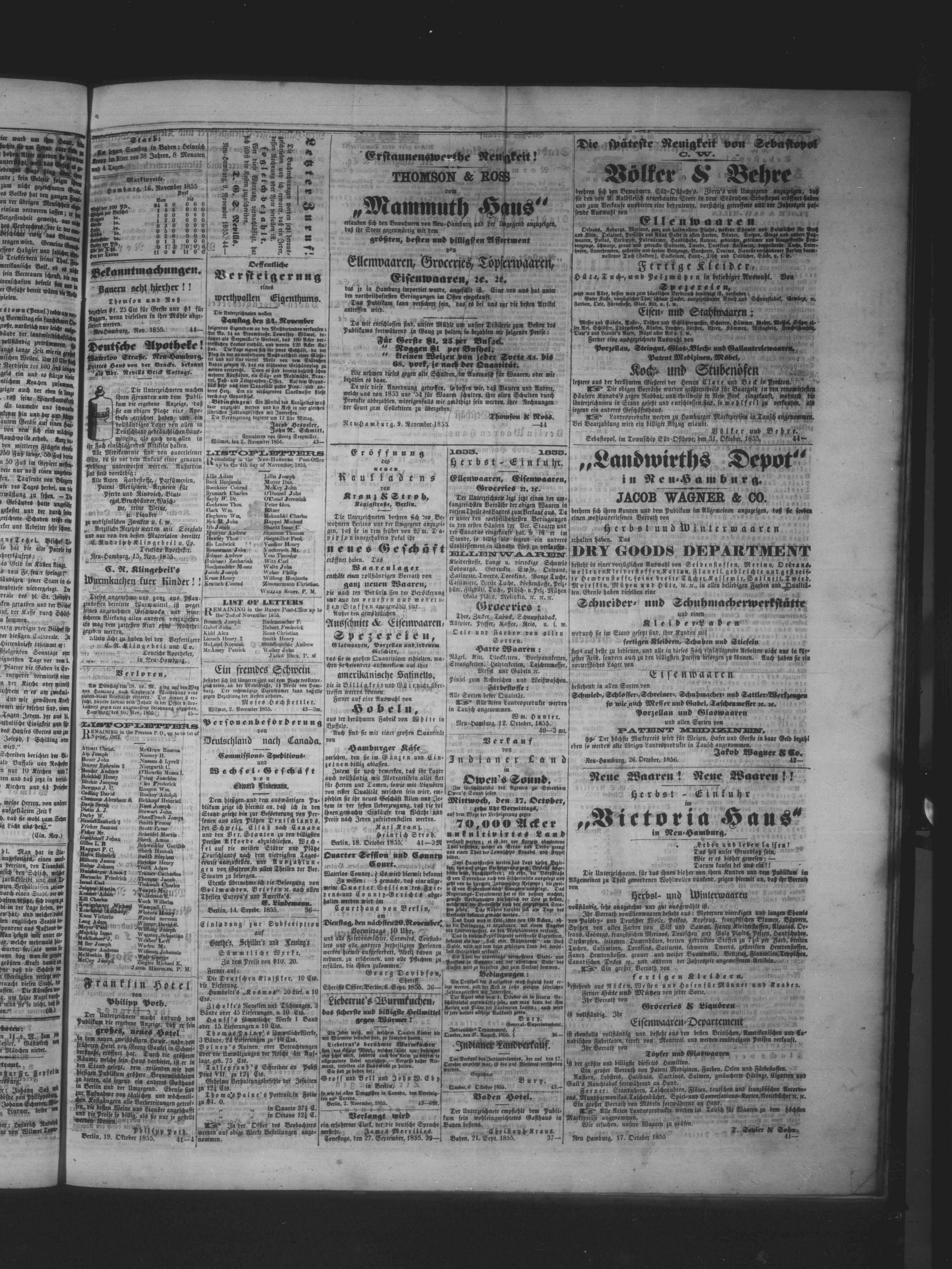 Neu-Hamburg, Waterloo County, C.W. : Gedruckt und herausgegeben von Peter Eby; 4 images avec recherche en texte intégral