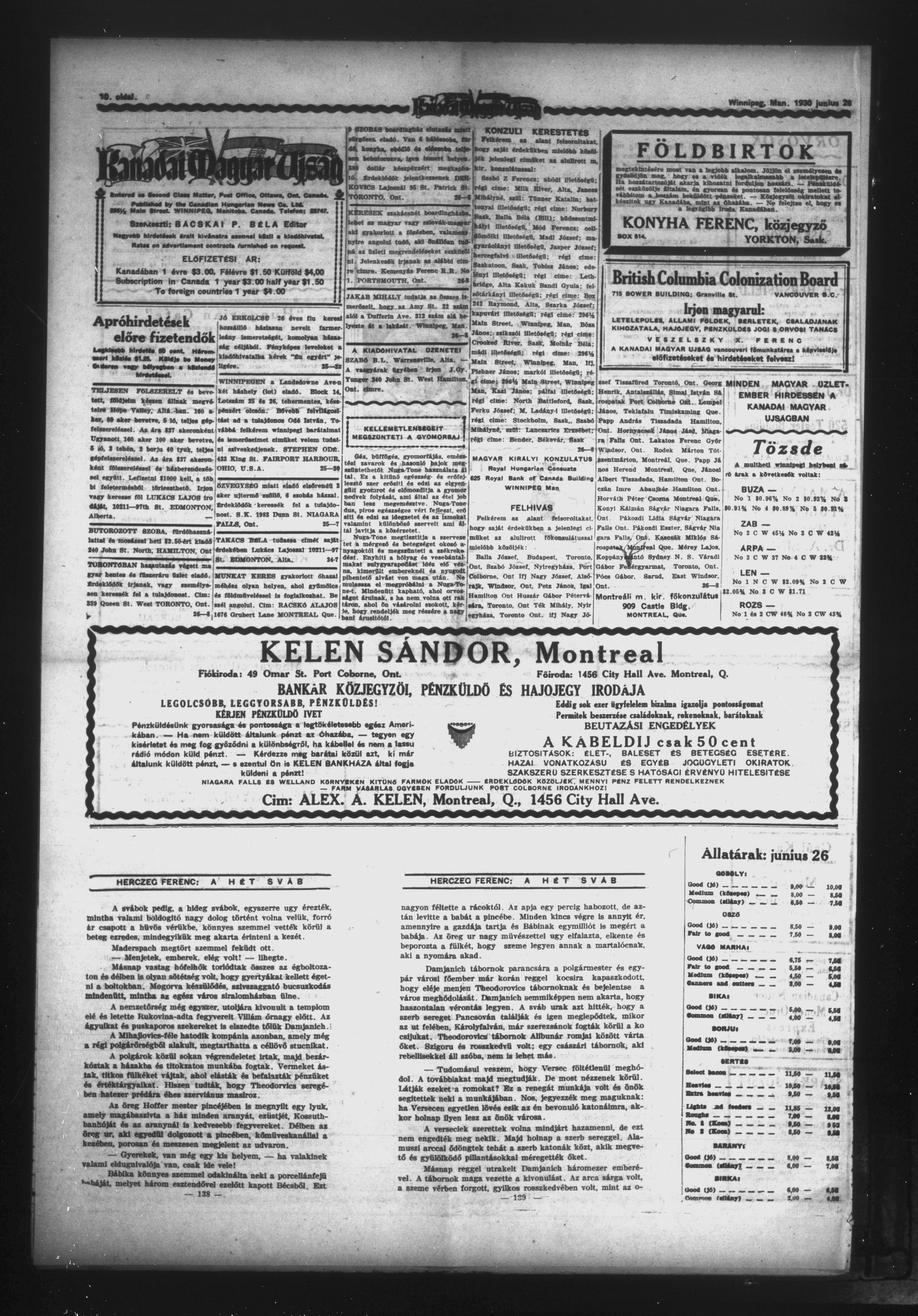 Kanadai Magyar Ujság : Vol. VII. Evfolyam, No. 26. Szam. (1930 Junius 26)