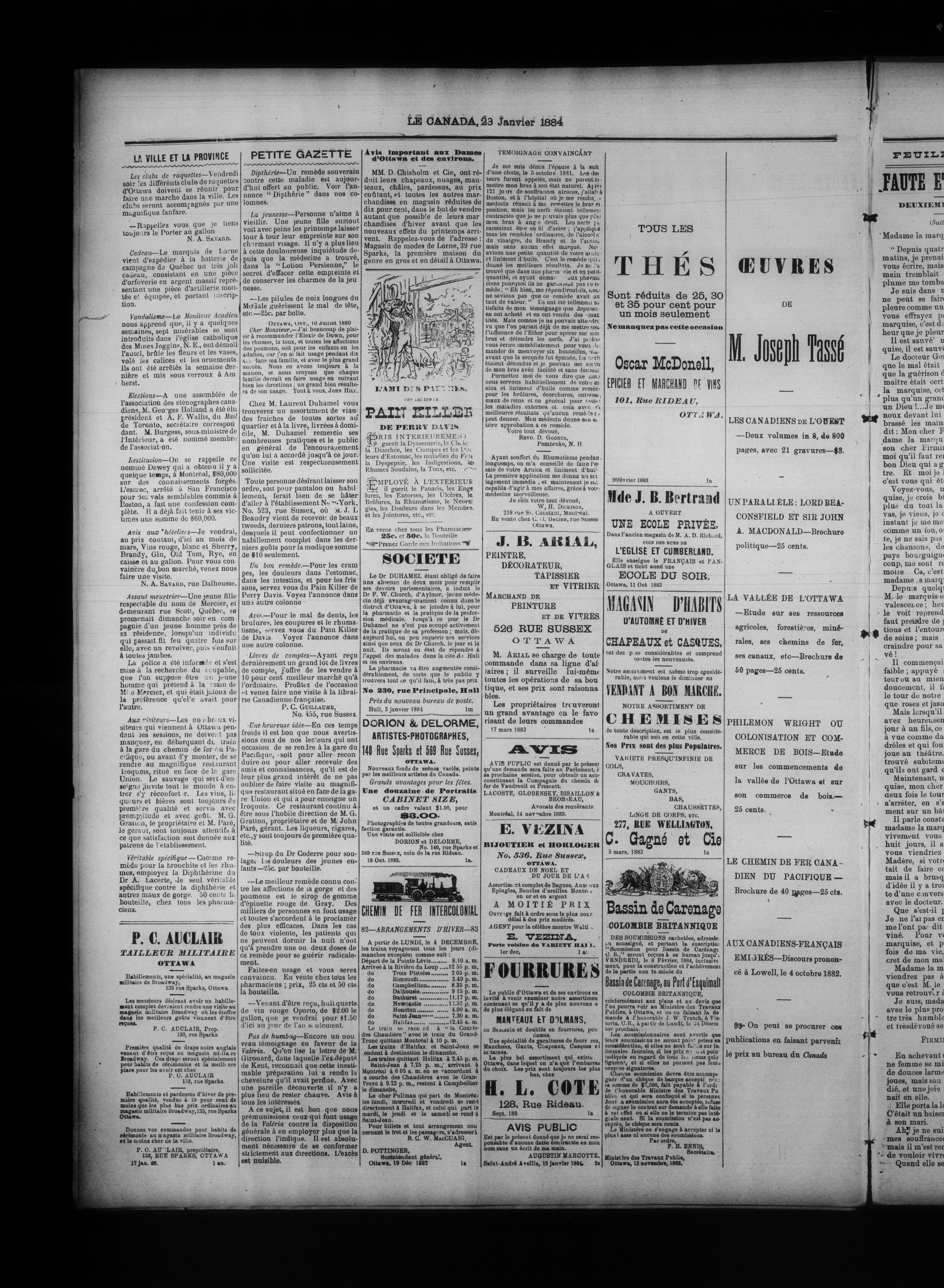 Ottawa et Hull [Québec] : La Société de Publicité, [1884]; 4 images avec recherche en texte intégral