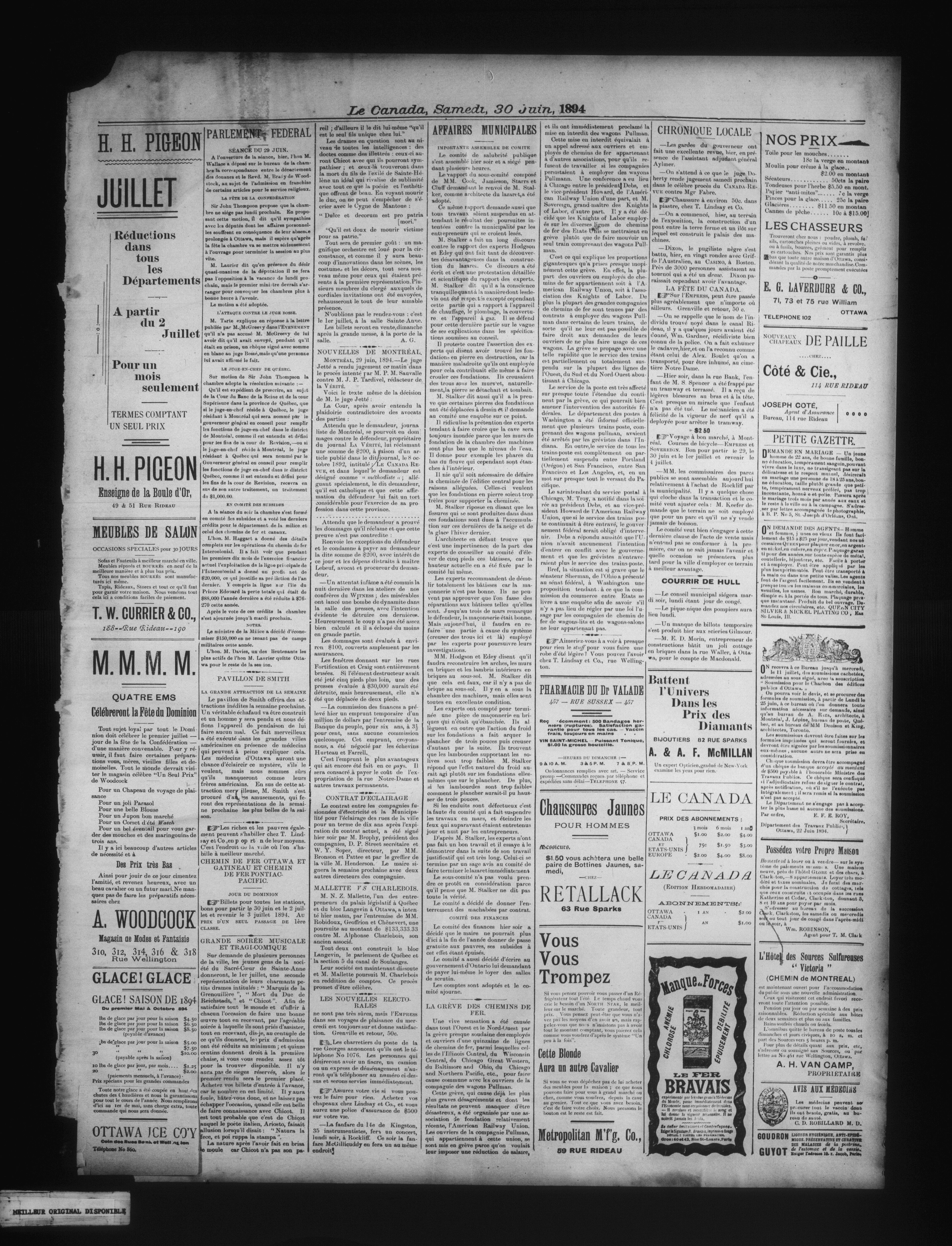 Le Canada : Le Canada : 15e année, No 132 (30 juin 1894)