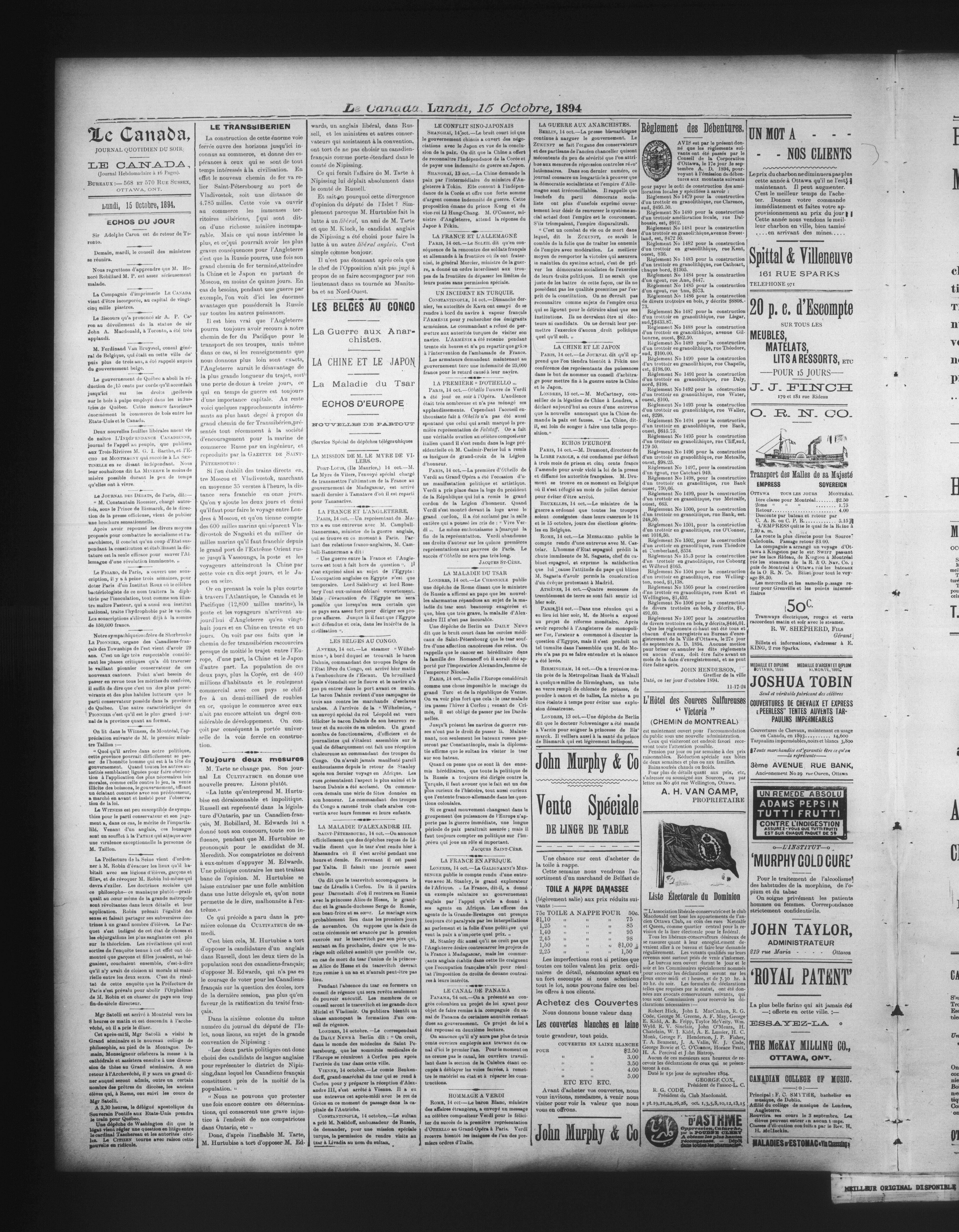 - Le Canada : 15e année, No 218 (15 octobre 1894)