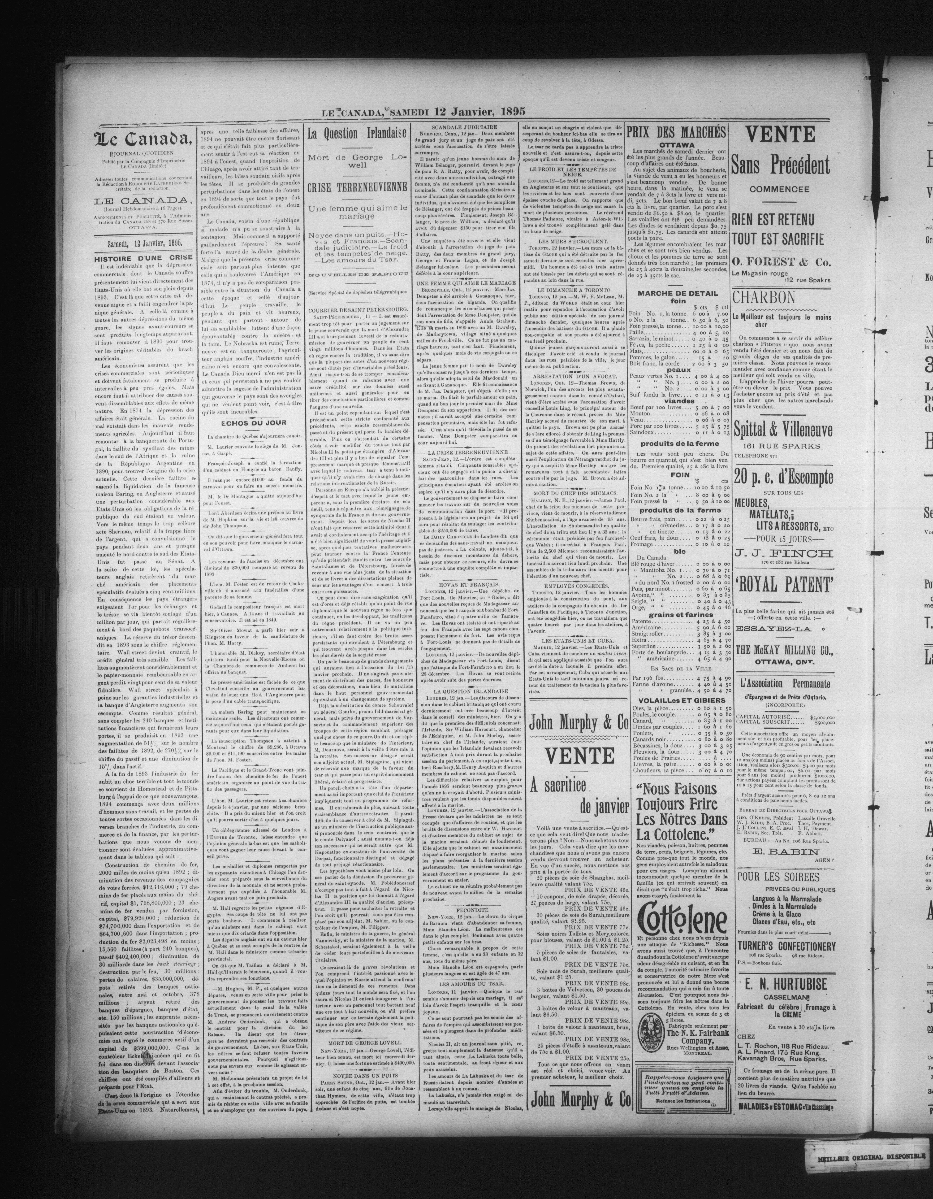 - Le Canada : 15e année, No 290 (12 janvier 1895)