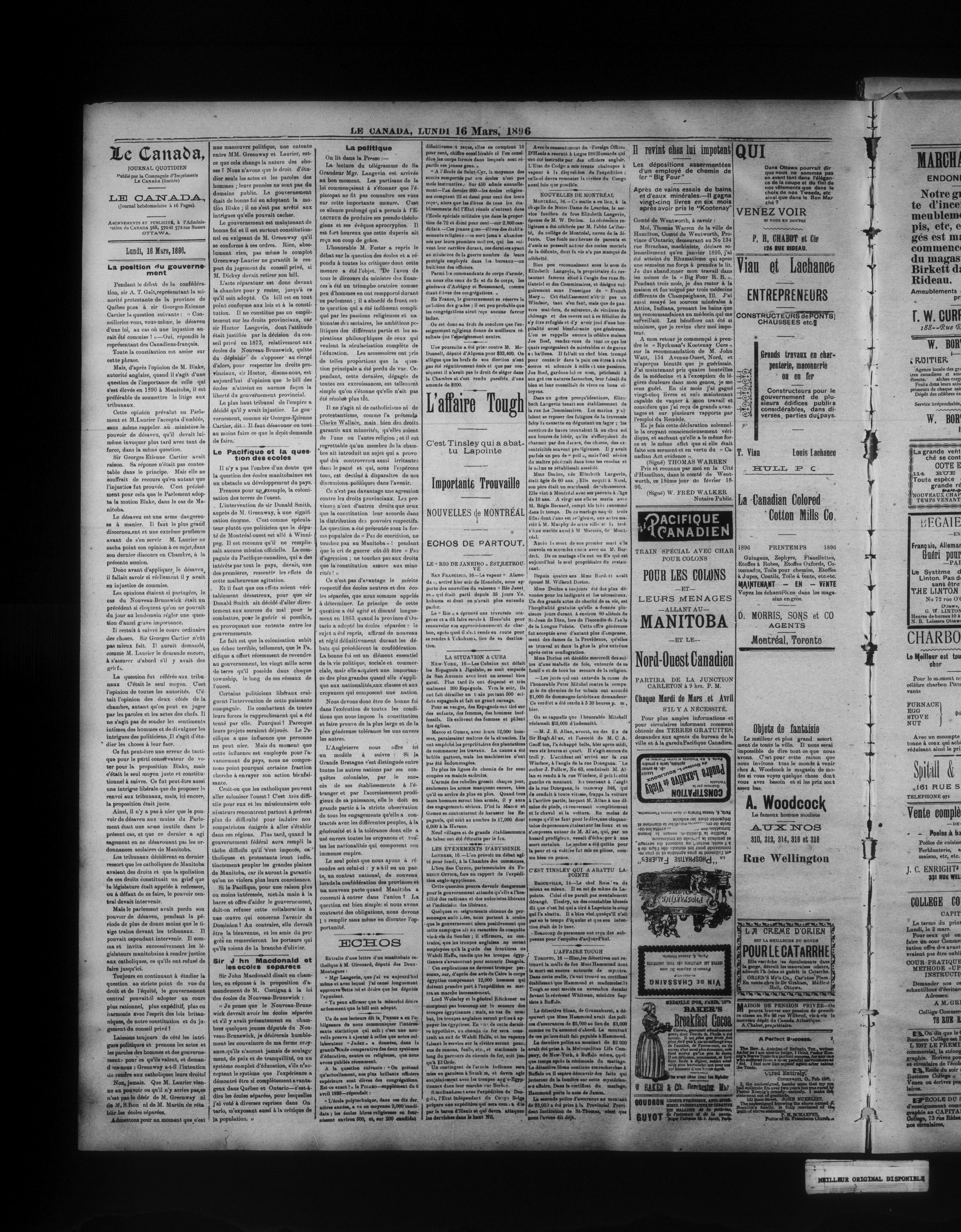 - Le Canada : 17e année, No 36 (16 mars 1896)