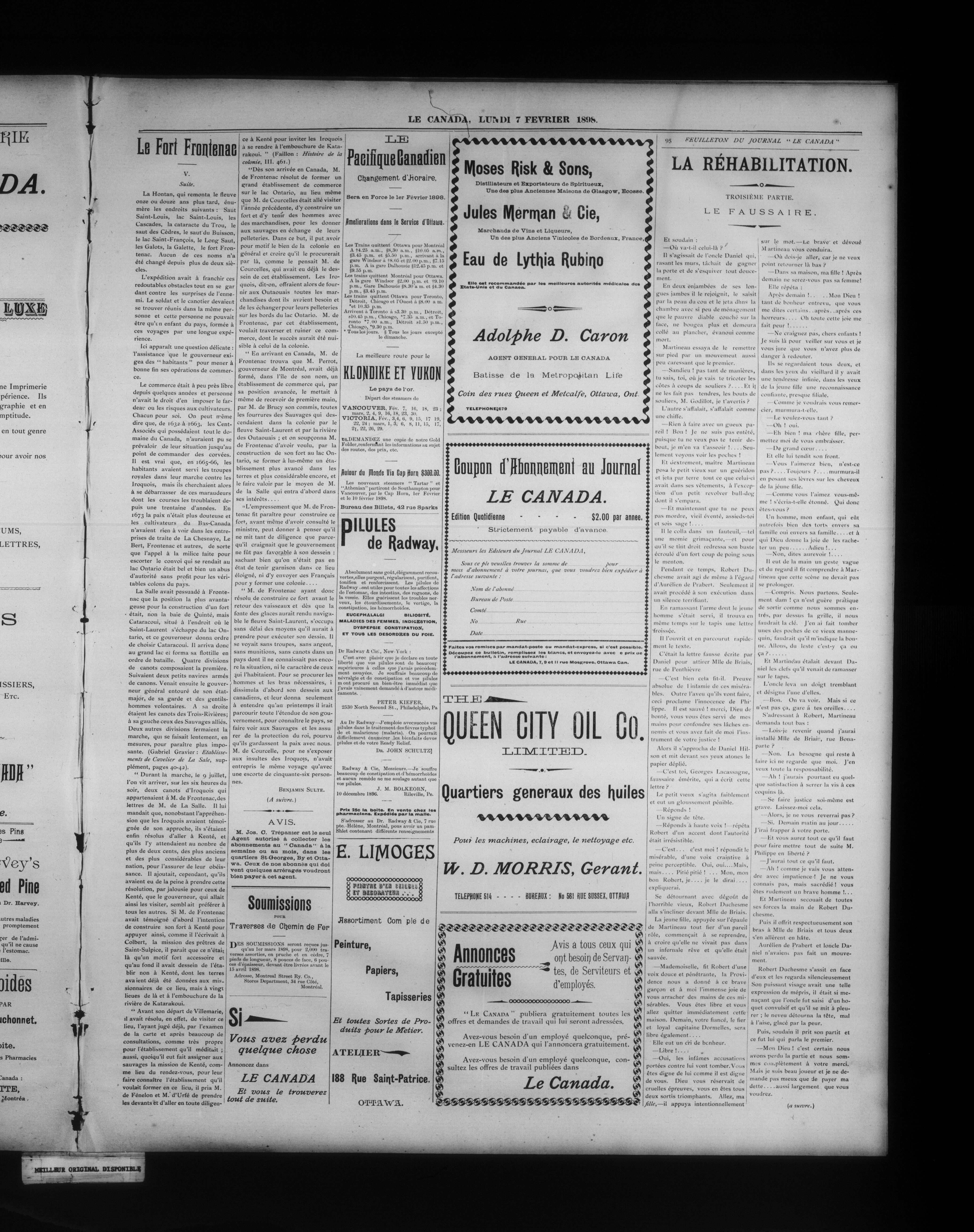 Ottawa : La Compagnie d'Imprimerie "Le Canada," Limitée, [1898]; 4 images, 0 avec recherche en texte intégral
