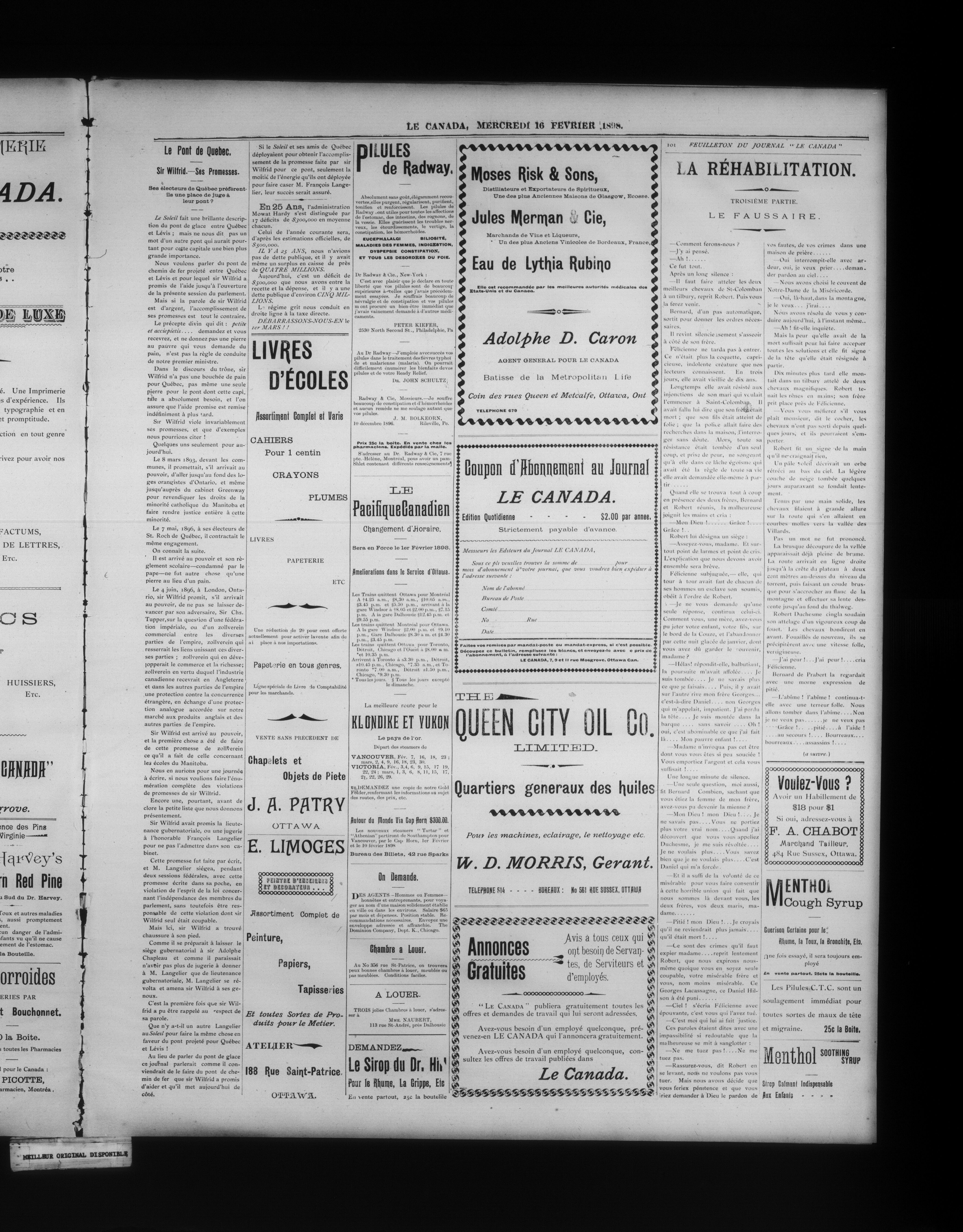 Ottawa : La Compagnie d'Imprimerie "Le Canada," Limitée, [1898]; 4 images, 0 avec recherche en texte intégral