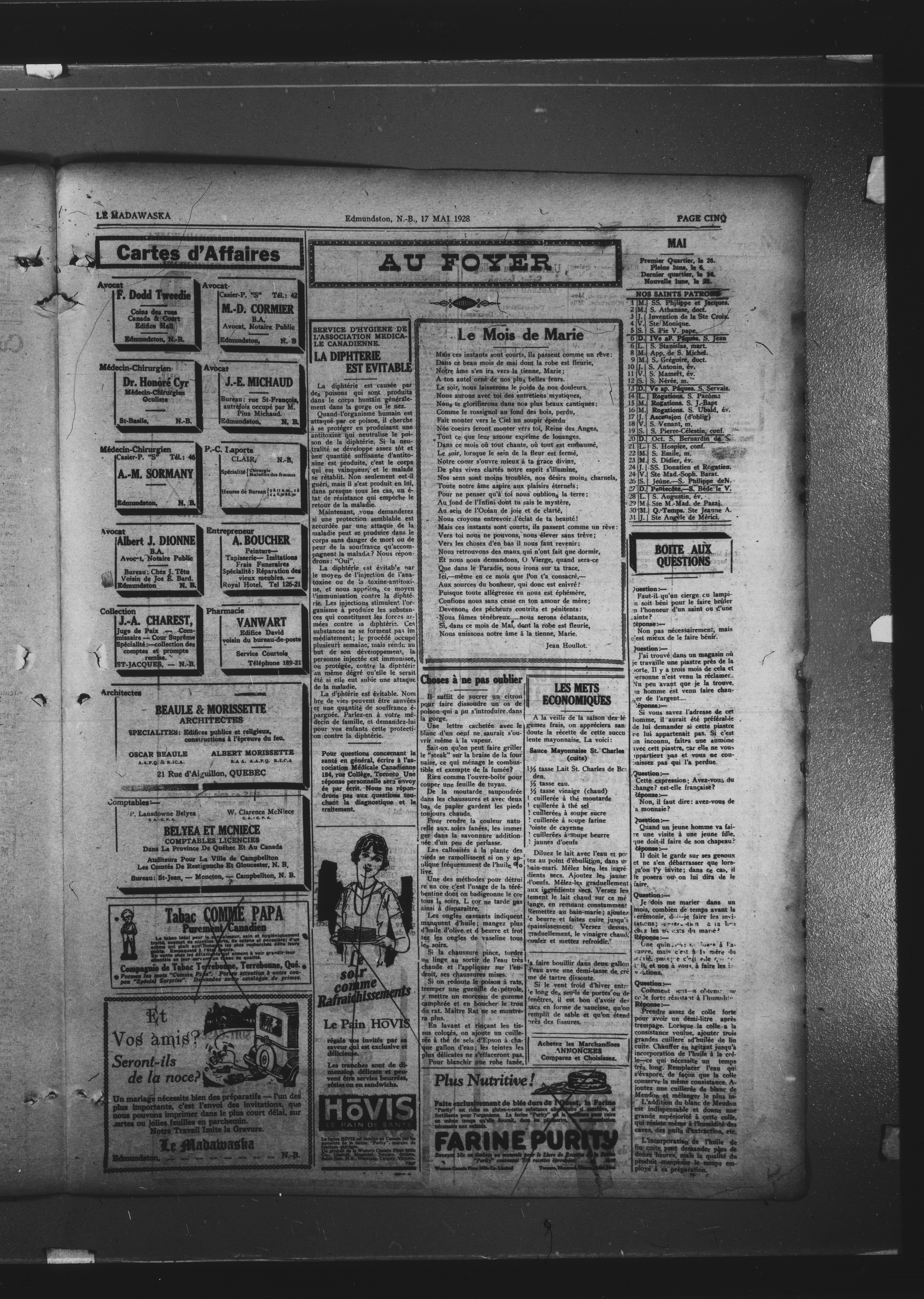 Le Madawaska : Quinzième Année, No 20 (17 mai 1928)