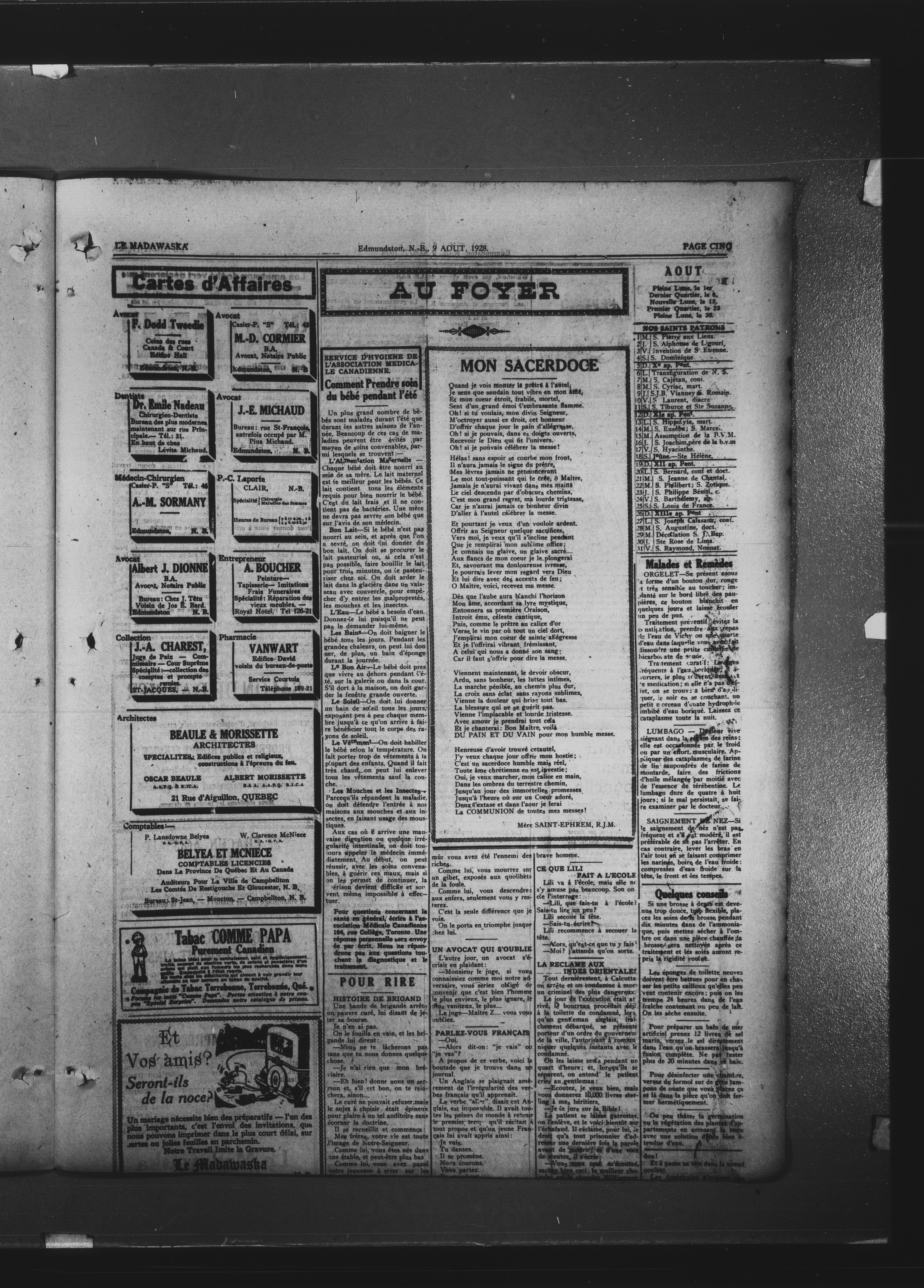Le Madawaska : Quinzième Année, No 32 (9 août 1928)