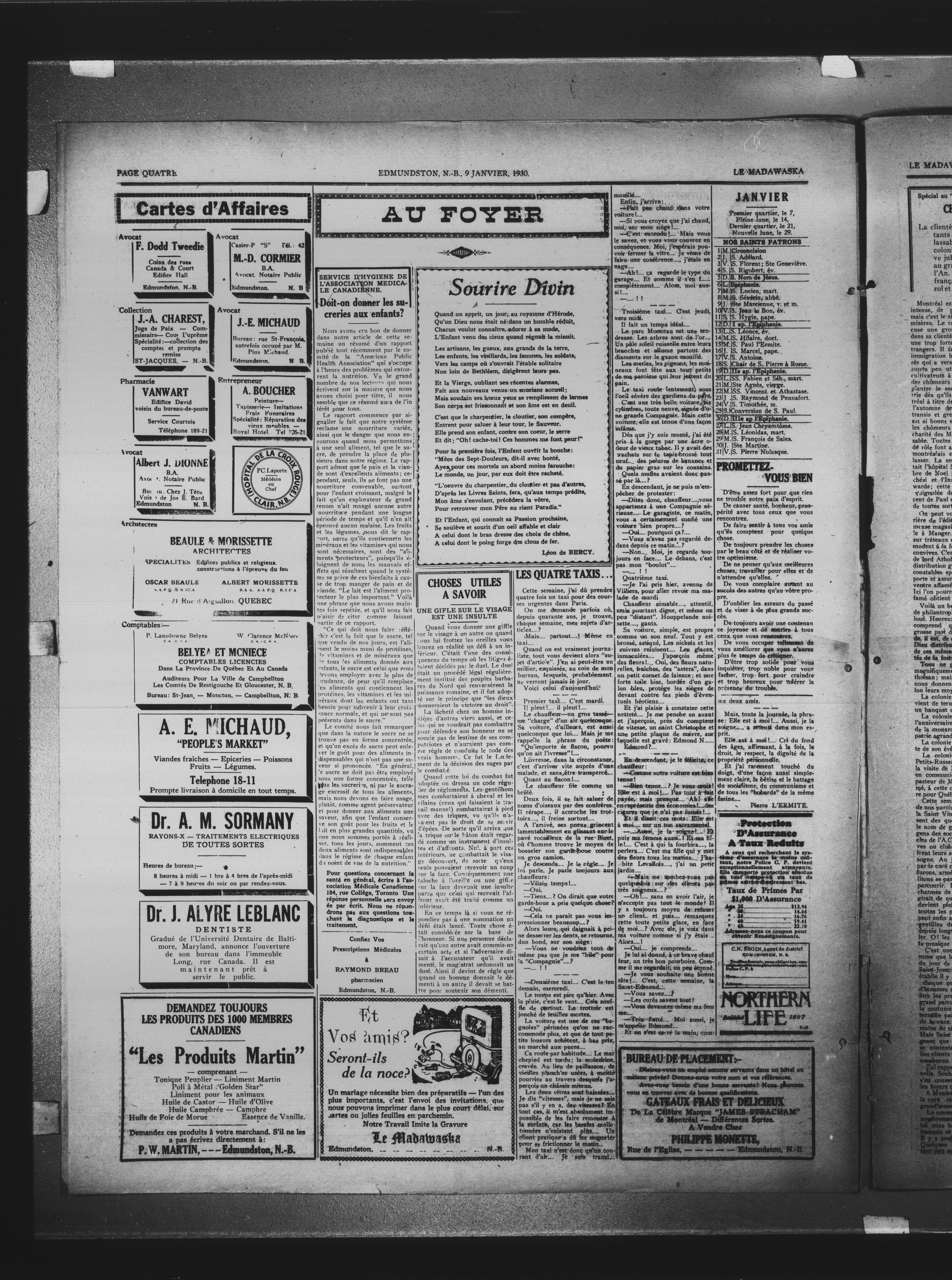 Le Madawaska : Dixseptième Année, No 2 (9 janvier 1930)